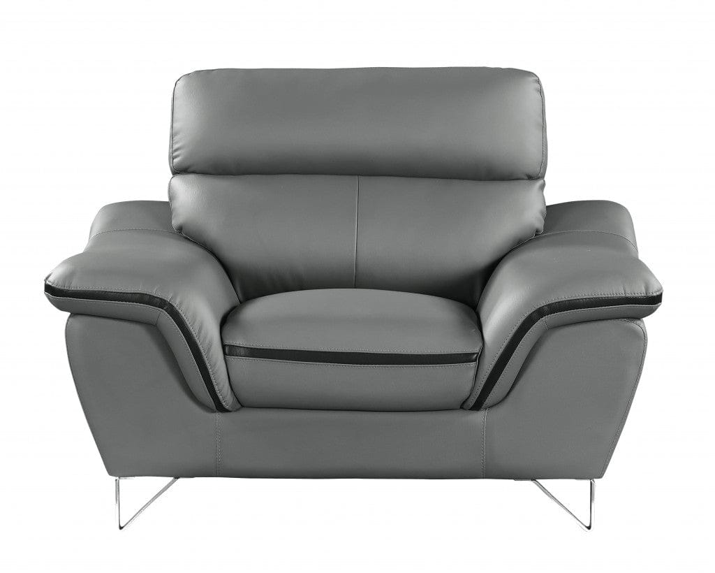 Add cozy chic to your space with this leather match solid color pillow top arms silver legs. The pillow top arms provide a relaxing support and give this chair a unique and desirable look. The chair's design has elegance written all over it and its modern style is exactly what you need to showcase unmatched uniqueness. Enjoy maximum comfort and versatility with this chair. 36" H x 49" W x 37" D