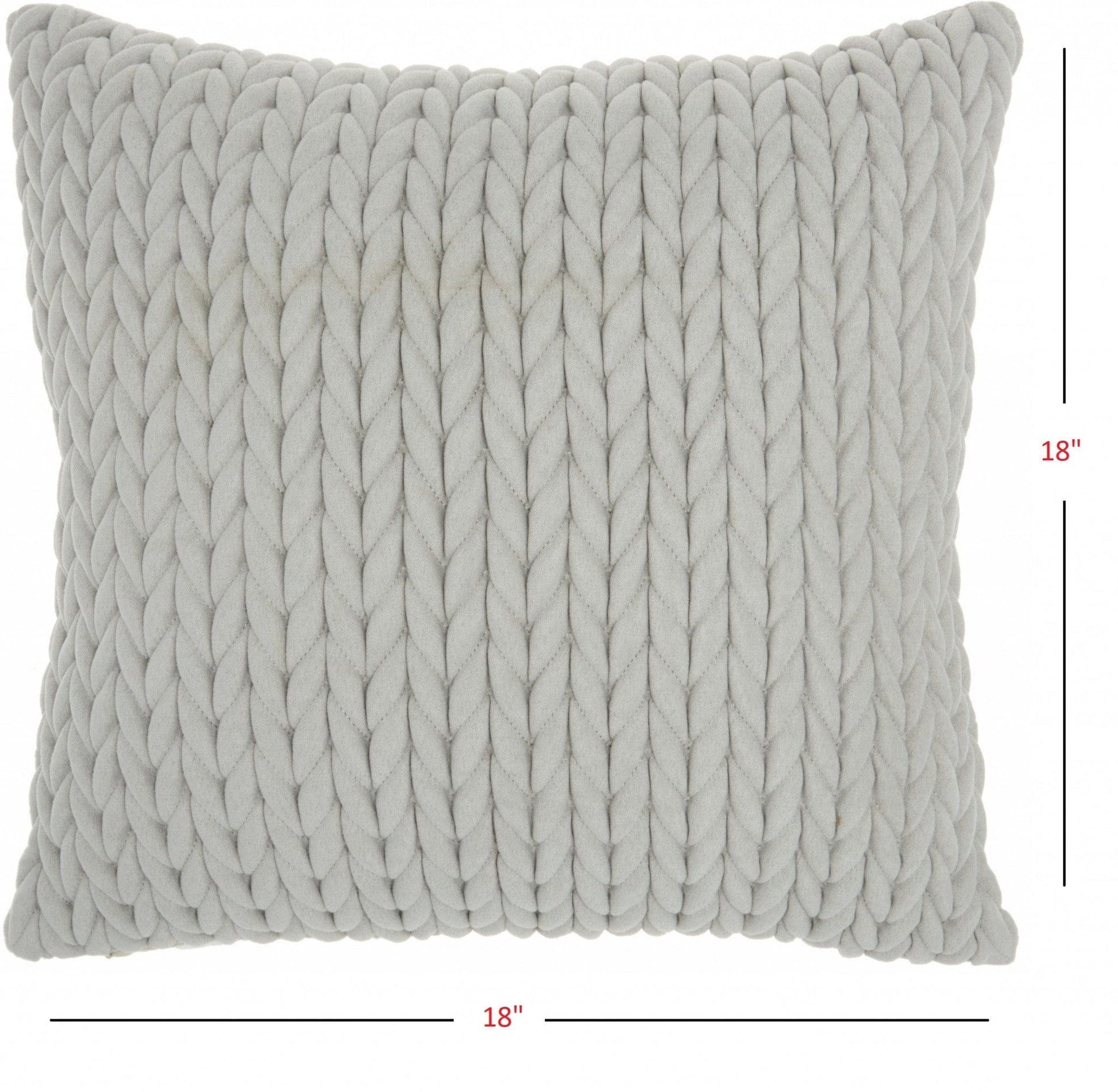 Invoke a sense of comfort, style, and elegance in your modern minimalistic decor with this trendy and soft solid Light Gray Chunky Braid Square Throw Pillow. The braided front is essential in delivering a new layer to the whole experience. Whereas with the aid of the 100% cotton fabric, longevity and ease in cleaning are ensured. The subtle dove gray color is meant to seamlessly harmonize with the more neutral and soft hues giving the whole space a sleek and inviting look. Pursue new progressive and creative spaces with staying true to high quality with this elegant piece. 18” x 18” x 5”