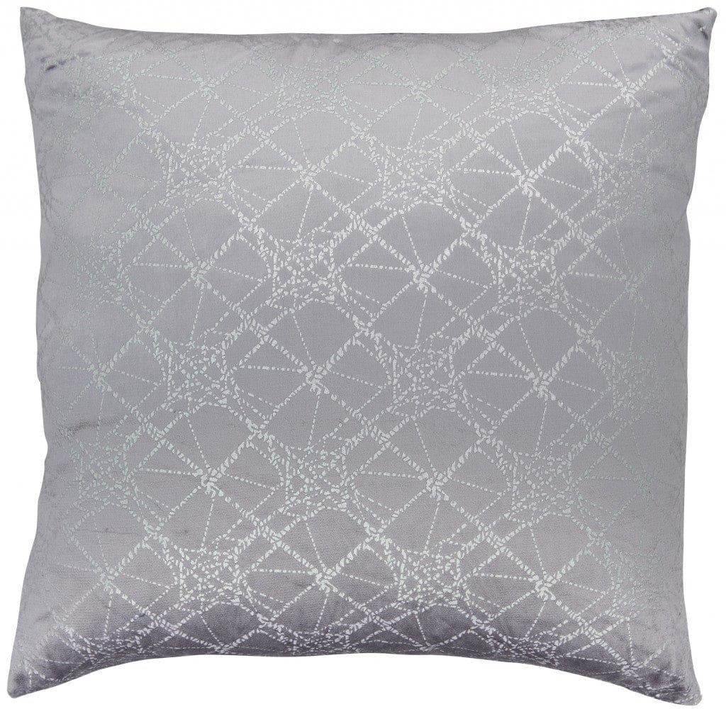 Add a touch of comfortable contemporary design to any seating space in your home with this Light Gray Silver Patterned Throw Pillow. With a square shape and curved edges, this throw pillow is covered in a lush light gray fabric that has a metallic silver pattern on it. The silver pattern has a mixture of dotted and solid lines which adds a nice depth to this throw pillow. This throw pillow emulates luxury with the perfect combination of satin fabric and polyester filling. Take your bed, favorite chair, or couch to the next level of comfort and design with this throw pillow. 5" H x 20" W x 20" D