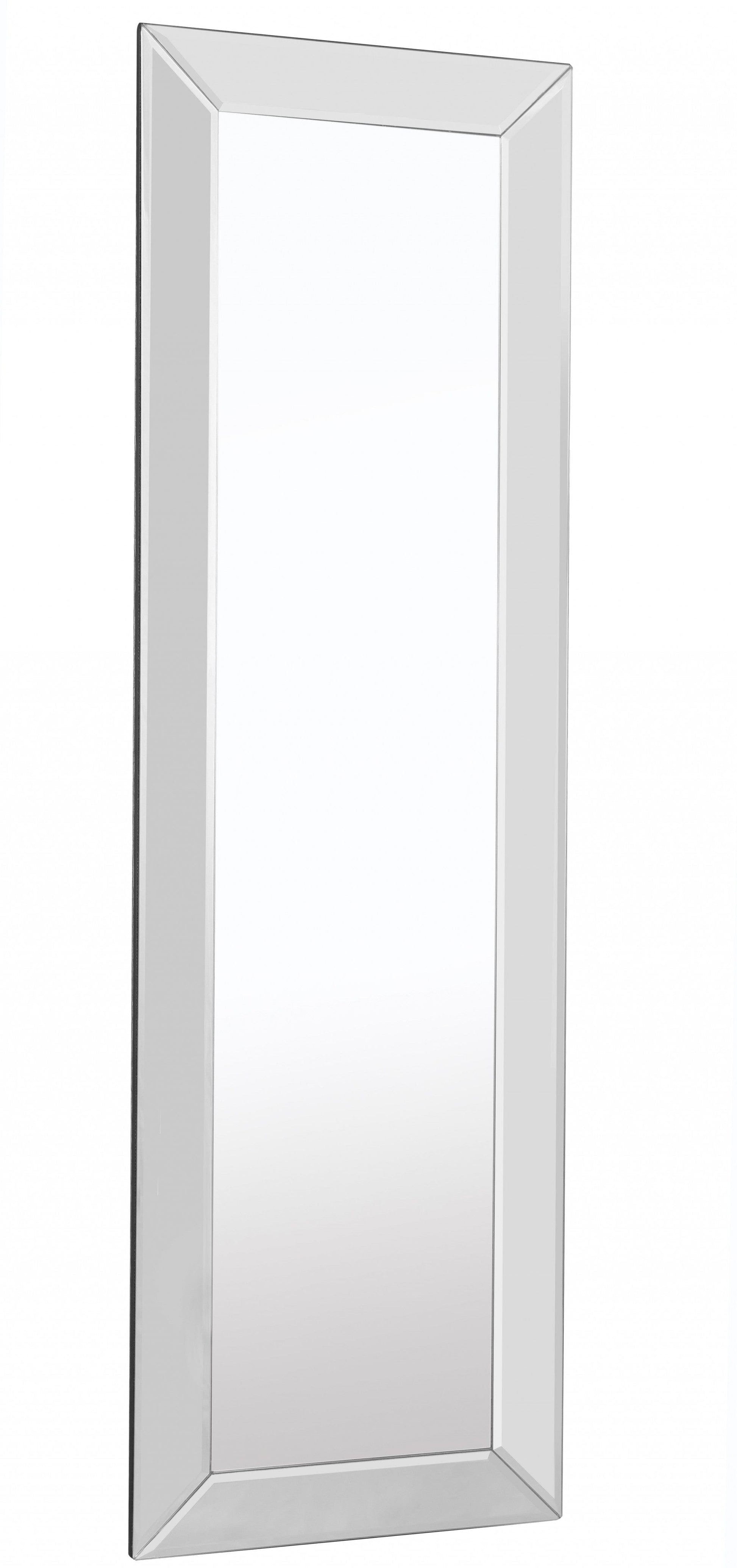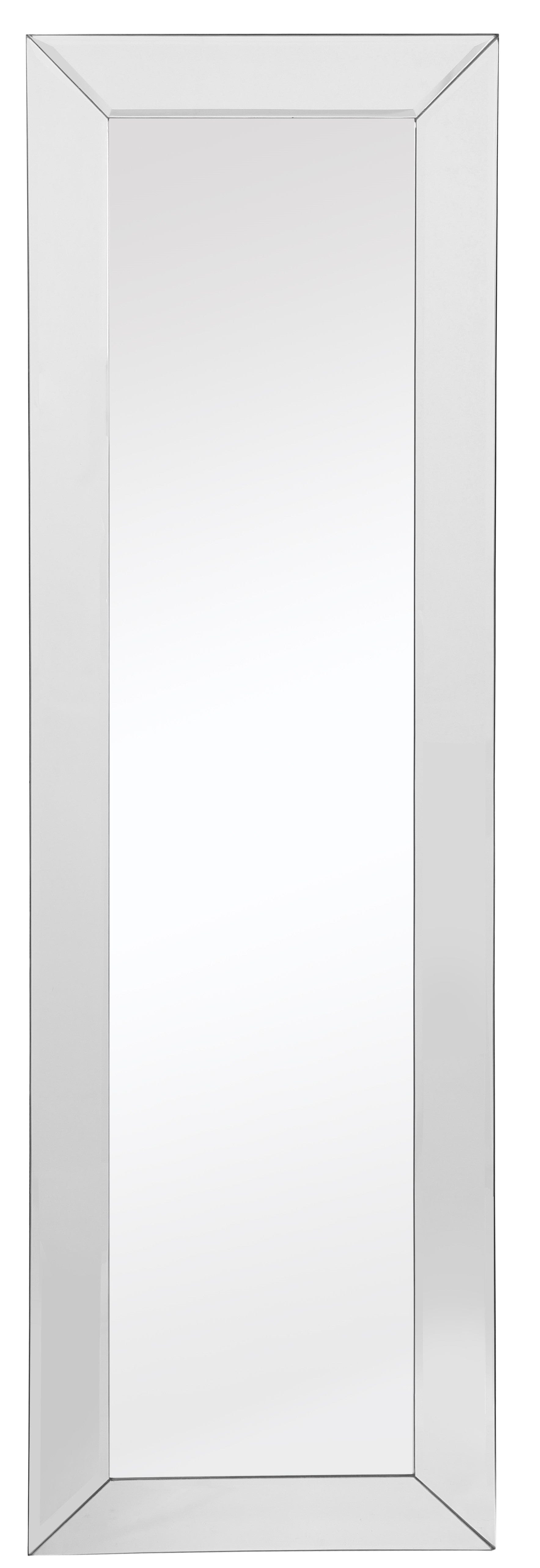 Check your full outfit before leaving the house with this Long Belved Edge Full Length Mirror. Hang this mirror on the wall, or even against your wall in your bedroom, foyer, or bathroom. This is a full length mirror with beveled glass edges that have been cut on an angle to create a framed look and adds dimension. It also comes with pre attached d ring hanging mounts that makes this mirror easy for you to hang up. 45" x 13.5" x 0.6".