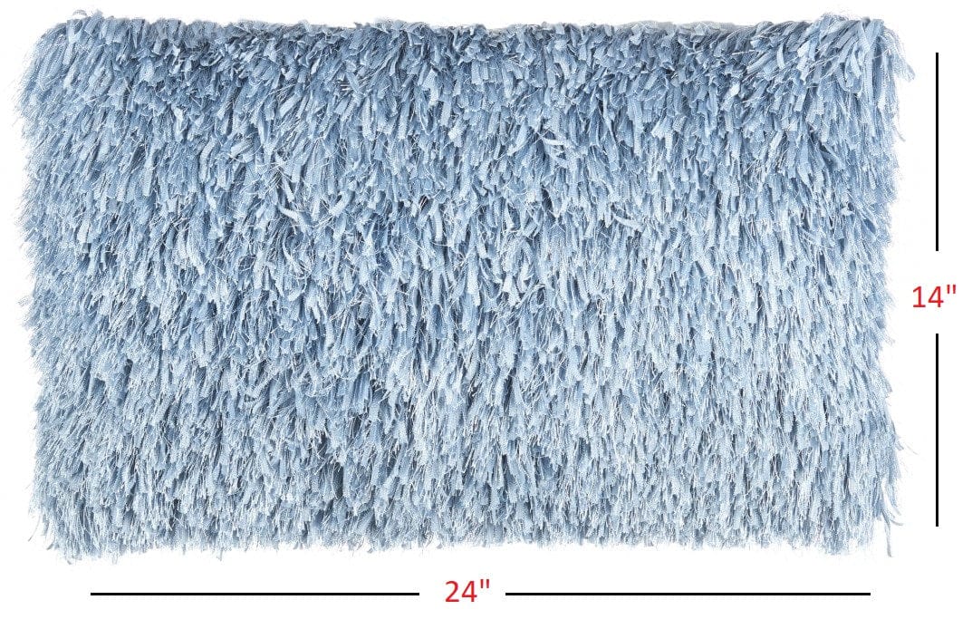 Soft, trendy and stylish, this Long Ocean Blue Shag Throw Pillow makes for the perfect interior accessory! The gorgeous soft inner of polyester mixed with the shag outside casing makes for a soft pillow that holds it shape, standing the test of time. The pretty ocean blue color is the perfect hue for easy styling, matching anything you throw it together with! The oblong rectangular shape makes for a great accent pillow that can be easily thrown together with a few square pillows to add a difference to your comfort setup. 5" x 14" x24"