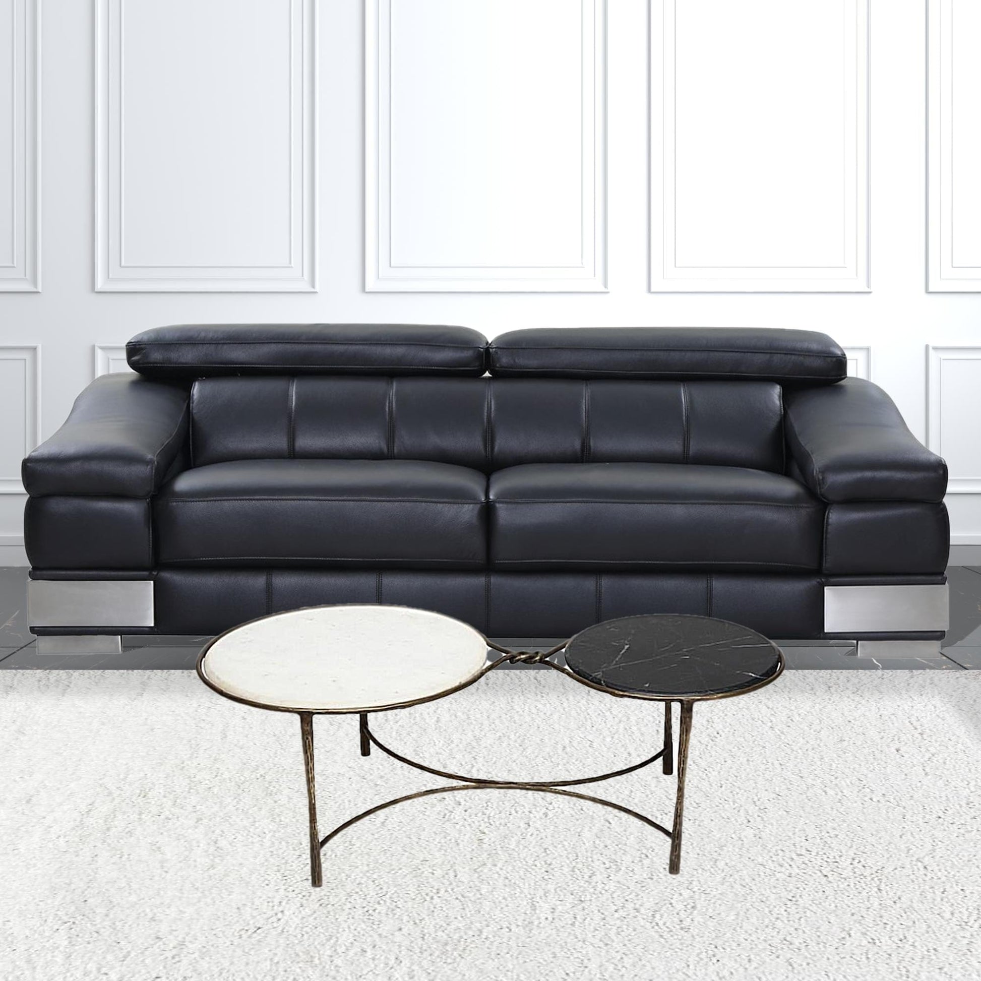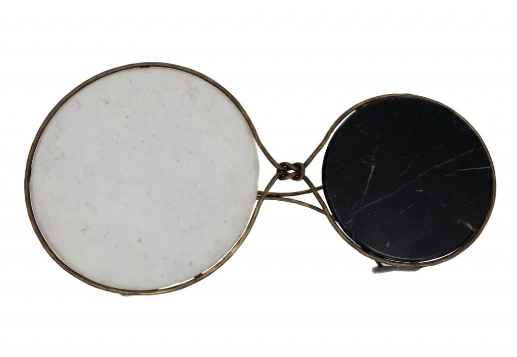 Showcase your unique sense of style with this Mid Century Dual Rim Coffee Table in your living room that exhibits a minimalistic design with great sophistication. The simplicity of the design highlights a remarkable resemblance to an infinity symbol flanking a white and a black marble table top held in place with an iron rim and a knot in the middle, perched atop an iron base for an antique flair. Ideal for serving drinks or displaying decorative objects in style, this creatively designed coffee table is bound to grab attention. This stunning coffee table is a work of art in and of itself, designed to complement your mid-century modern home. 48” x 25” x 16”