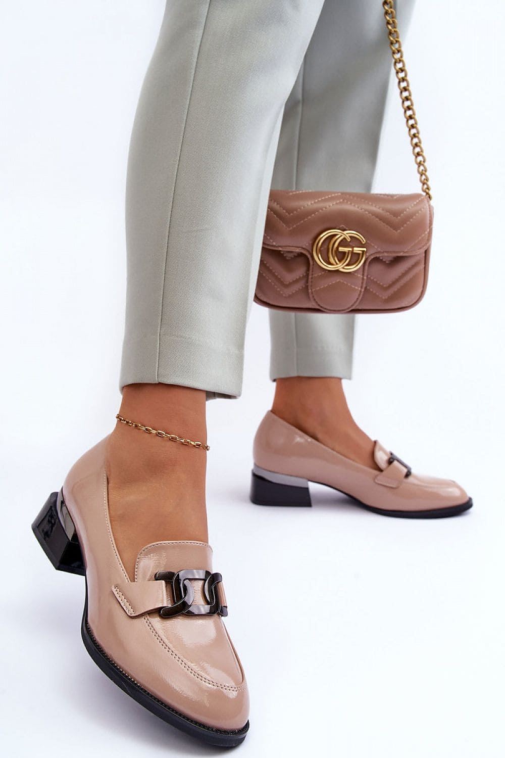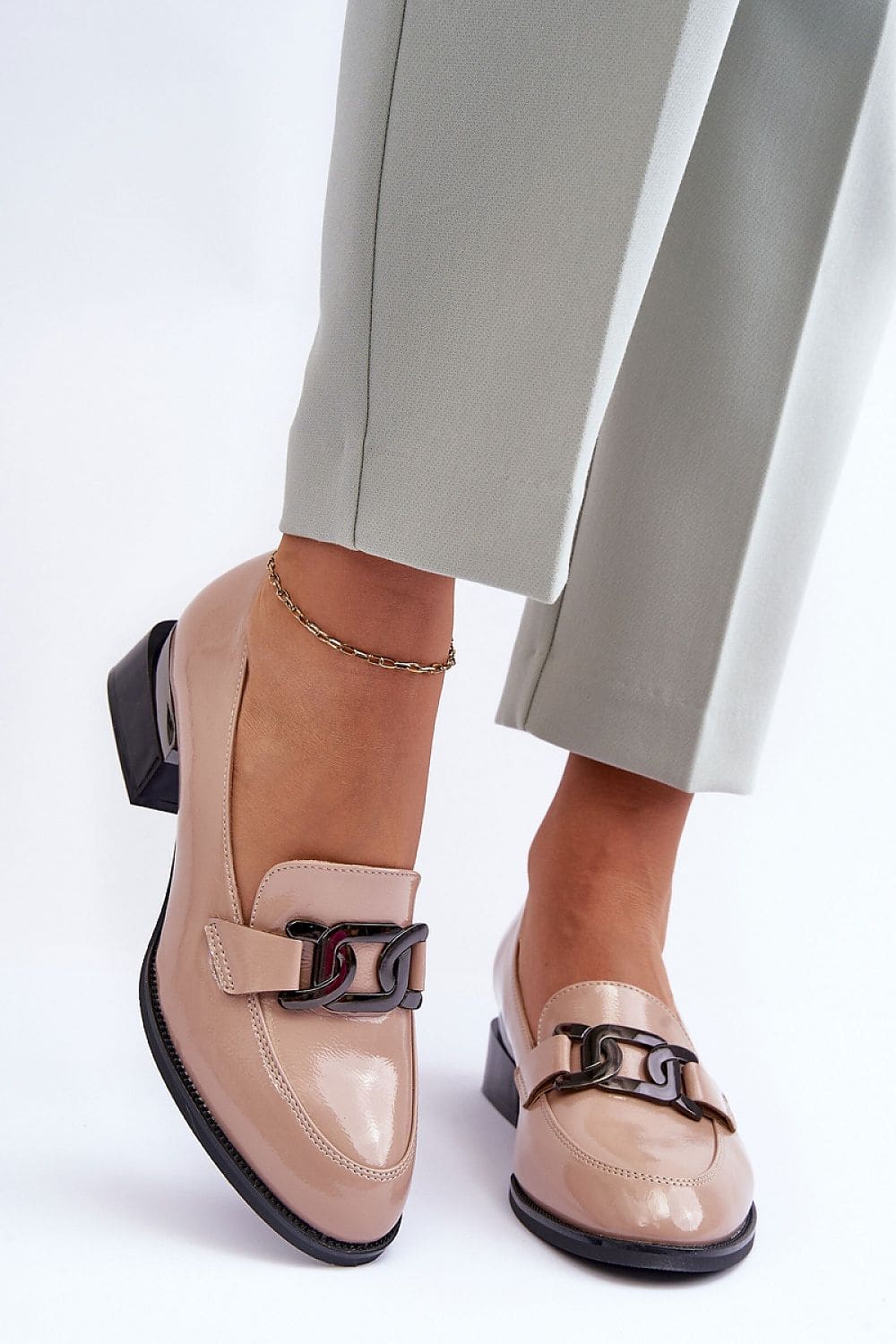 Elegant women's half shoes set on a heel in the form of a low block. The insole made of natural leather will provide comfort. Almond-shaped toe. Decorative chain on the front, which will add elegance. The upper is made of eco leather. You absolutely must have them! Do not wait any longer!