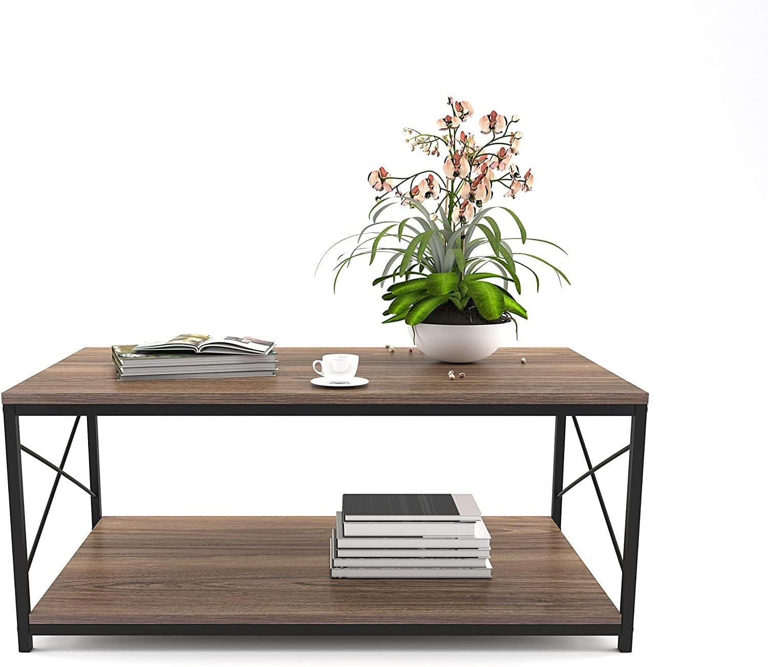 With a touch of industrialist and modern design this Mod Walnut and Black Coffee Table with Shelf is a great way to bring an attractive storage and display option to your space. This coffee table is ideal for living room, family room, or can be used in bedroom or office. The black square tube metal base of this open concept table makes a nice visual contrast with the walnut finish of the anti-scratch laminent tabletop and shelf. There is a contemporary styled x design to the sides that gives this table a little extra something special. Add a modern vibe to your space as you display and store books, photos, baskets, and treasured accessories in your living room, bedroom, office or even kitchen. 17.7" x 41.3" x 23.6"