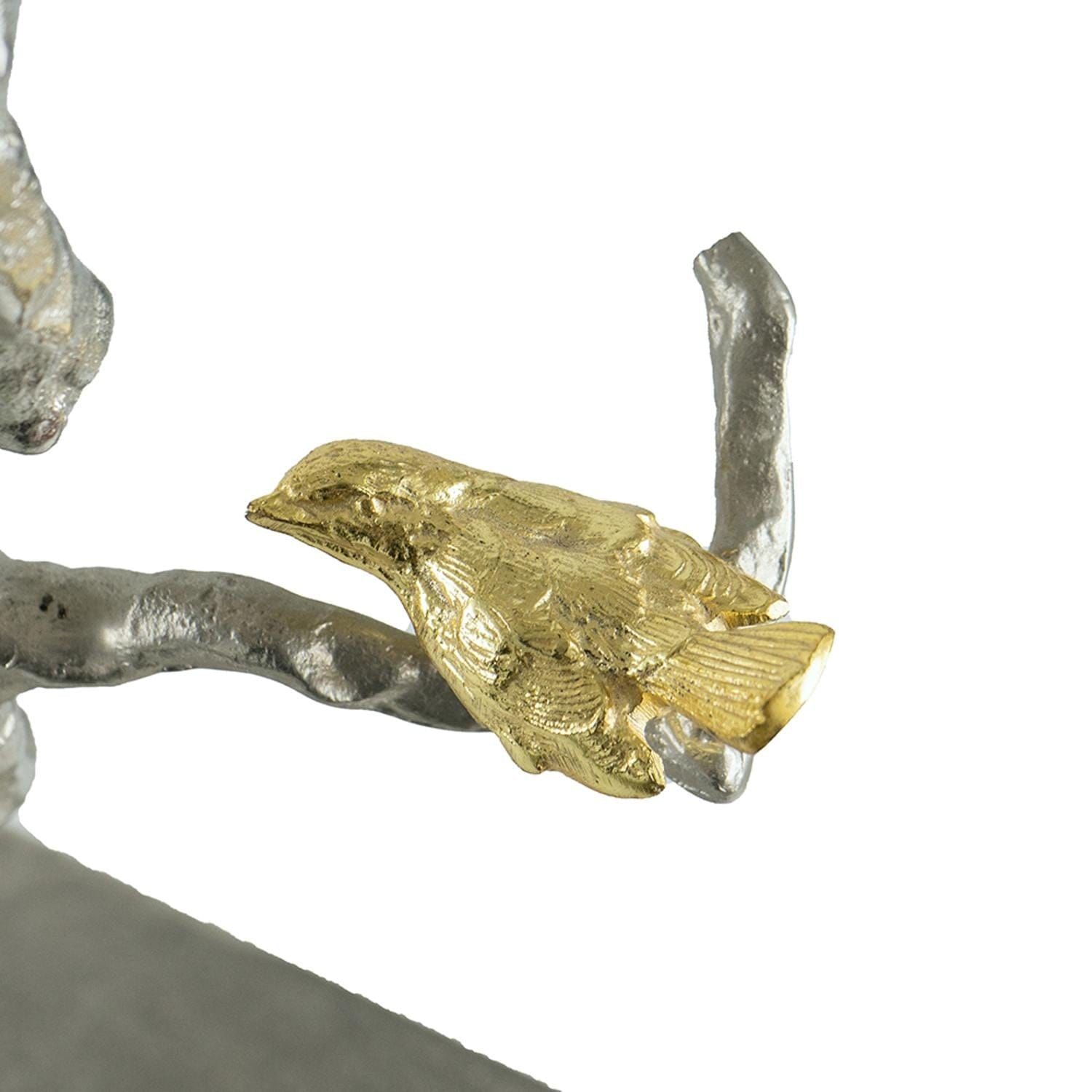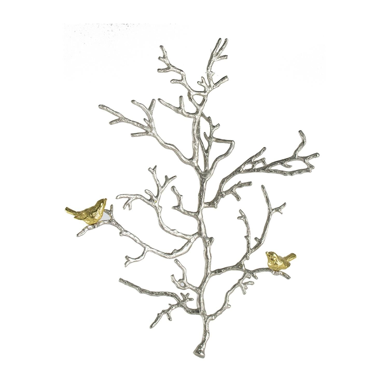 Accentuate your love for botanical accents with this mesmerizing Modern 22" Silver Branch and Golden Birds Wall Art that offers a dramatic shine to stand out as a three dimensional centerpiece on the wall. The visually stunning silver branches with two tiny golden birds are sure to steal the show in your living space. Crafted with 100% aluminum, this impactful wall sculpture will certainly earn you loads of compliments from the guests. 22.1” x 17.3” x 5.5”