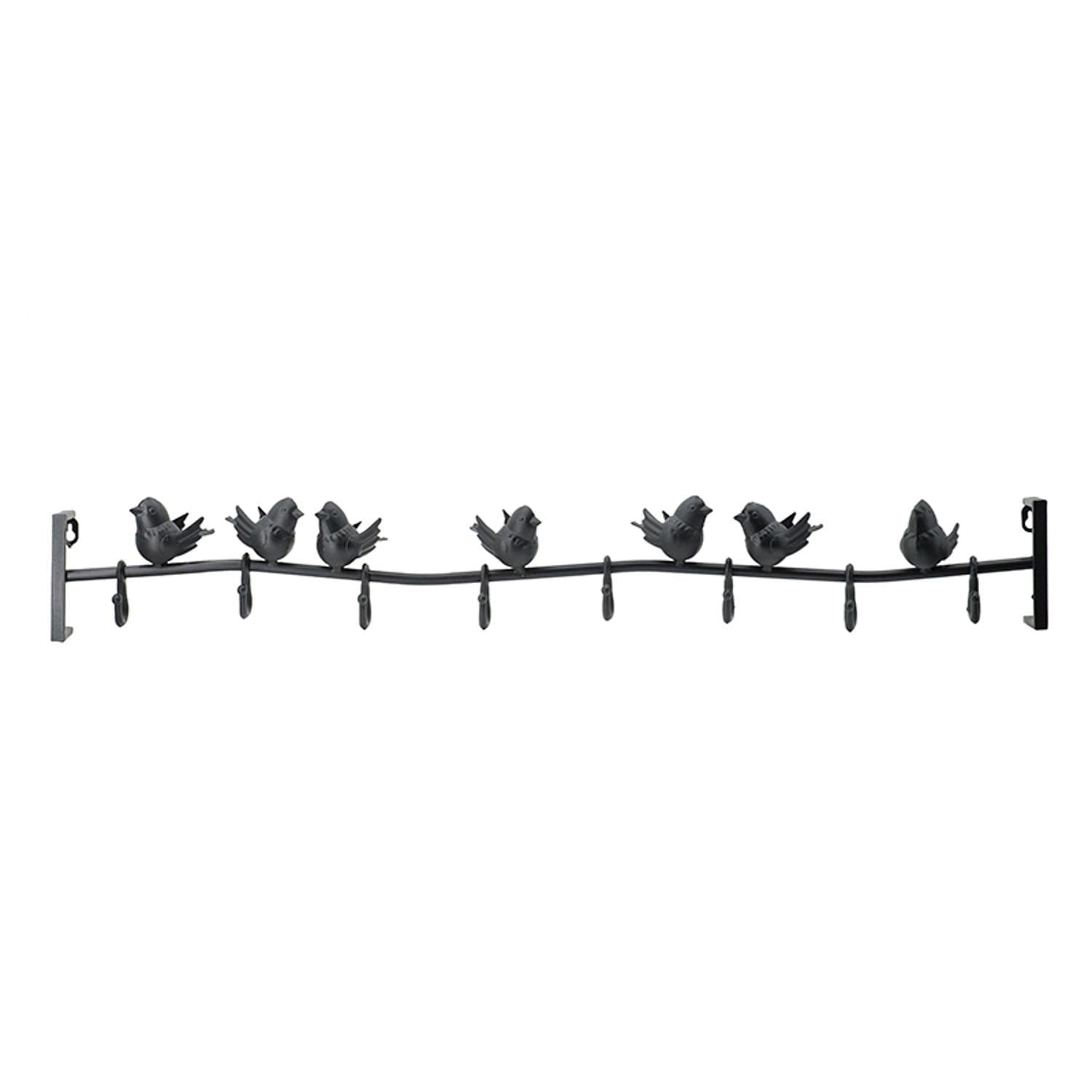 Modern Black Birds Eight Hook Wall Coat Hanger