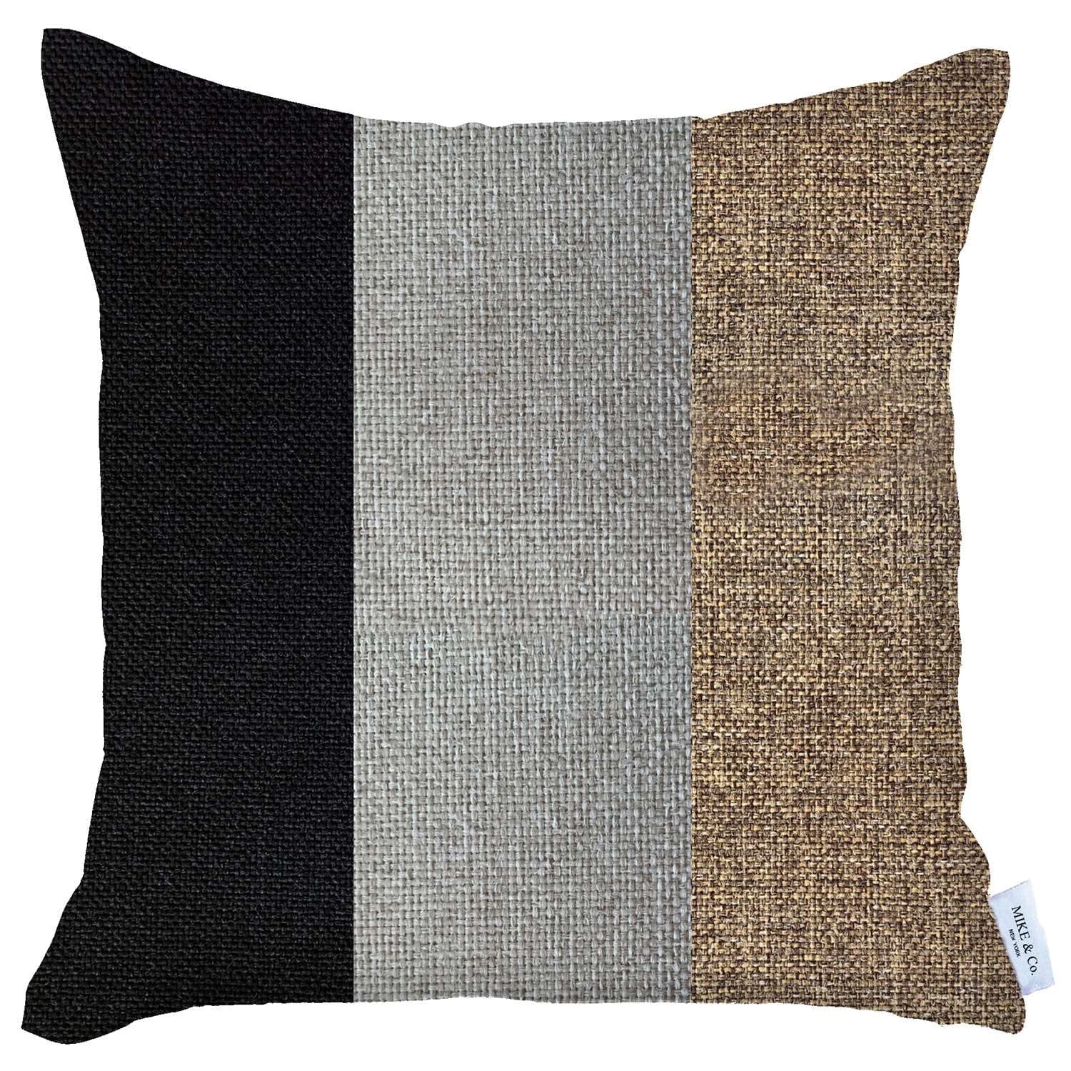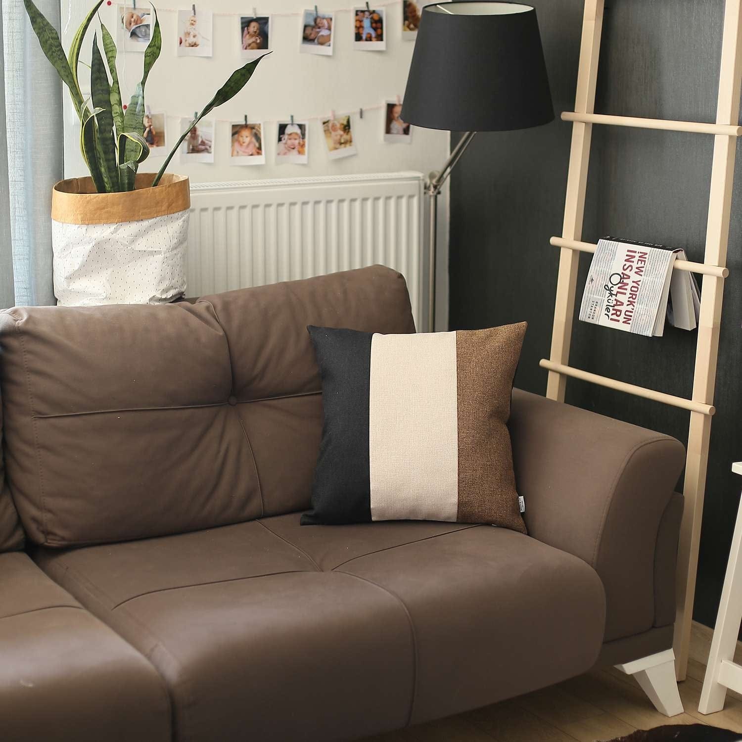 Extruding a playful aura wrapped in modern sophistication, this Modern Brown Tricolor Striped Throw Pillow will instantly spruce up your living space. The tricolored symphony in charcoal black, milky white, and earthy brown is fashioned in three distinct segments that feel harmonious yet contrasting to the eyes. Upholding the exceptional craftsmanship of Turkish artisans, this pillow cover is made of 100% polyester fabric with OEKO-TEX Standard 100 certification to ensure product safety, enhanced durability, and color intensity while making it easy for spot cleaning. It features a hidden zipper closure all around for a clean and seamless feel on the touch while the recycled poly filling inside adds to the fluffy look and enhanced comfort. Place this beautiful set of 4 pillow covers against bold or neutral shades to make your living space come alive. 18” x 18” x 1”
