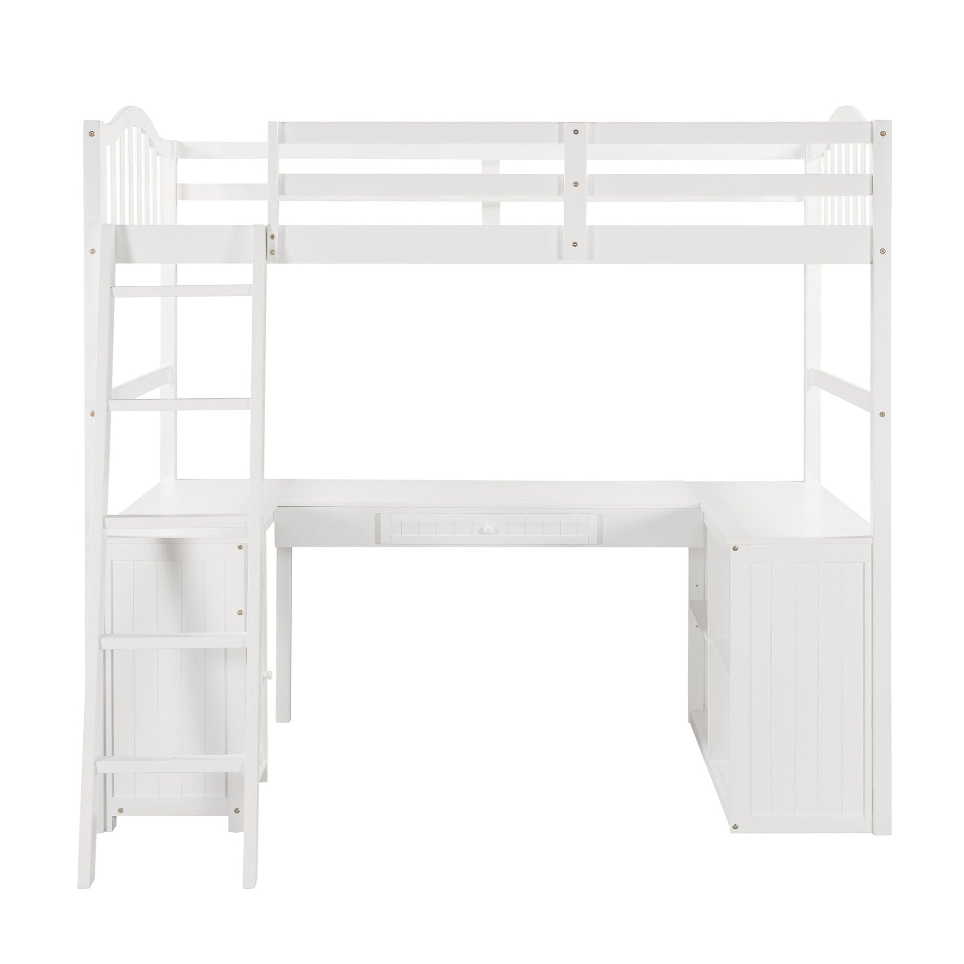 Modern Classic White Twin Loft Bed with Book Shelf Desk and Cabinet
