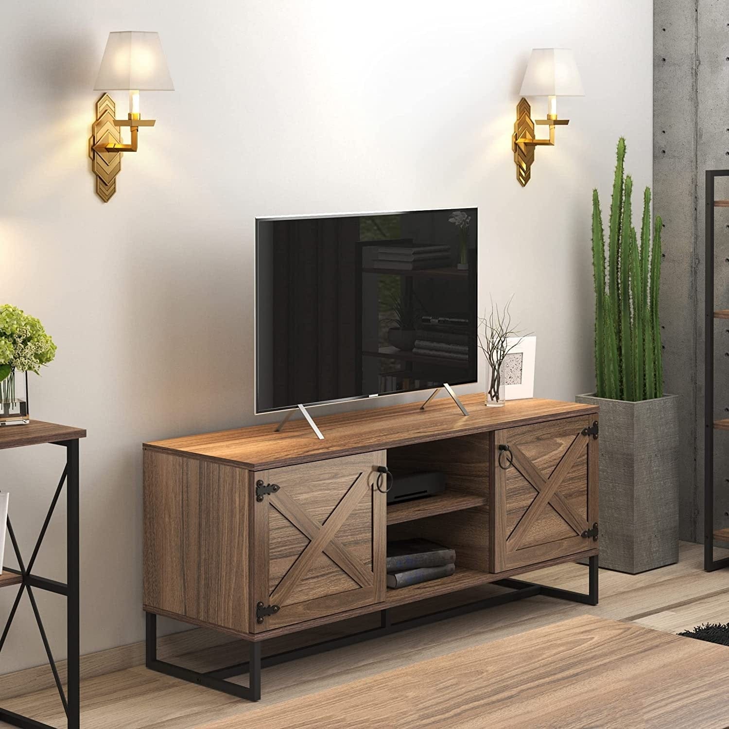 Modern Farm Style Wood Grain and Black TV Media Stand