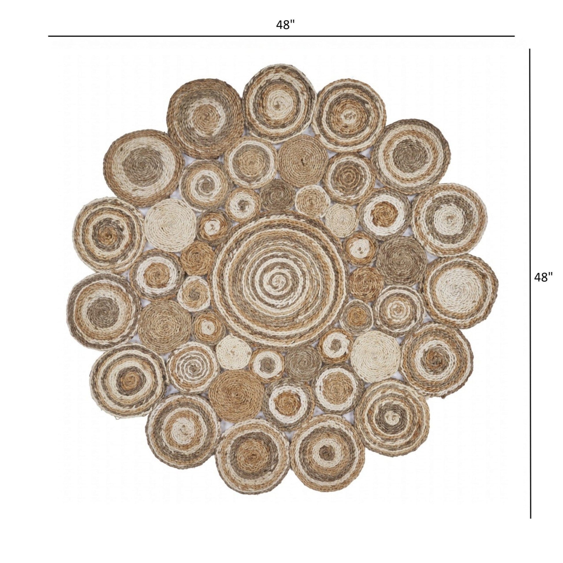 Multi-Toned Intricate Circle Natural Jute Area Rug