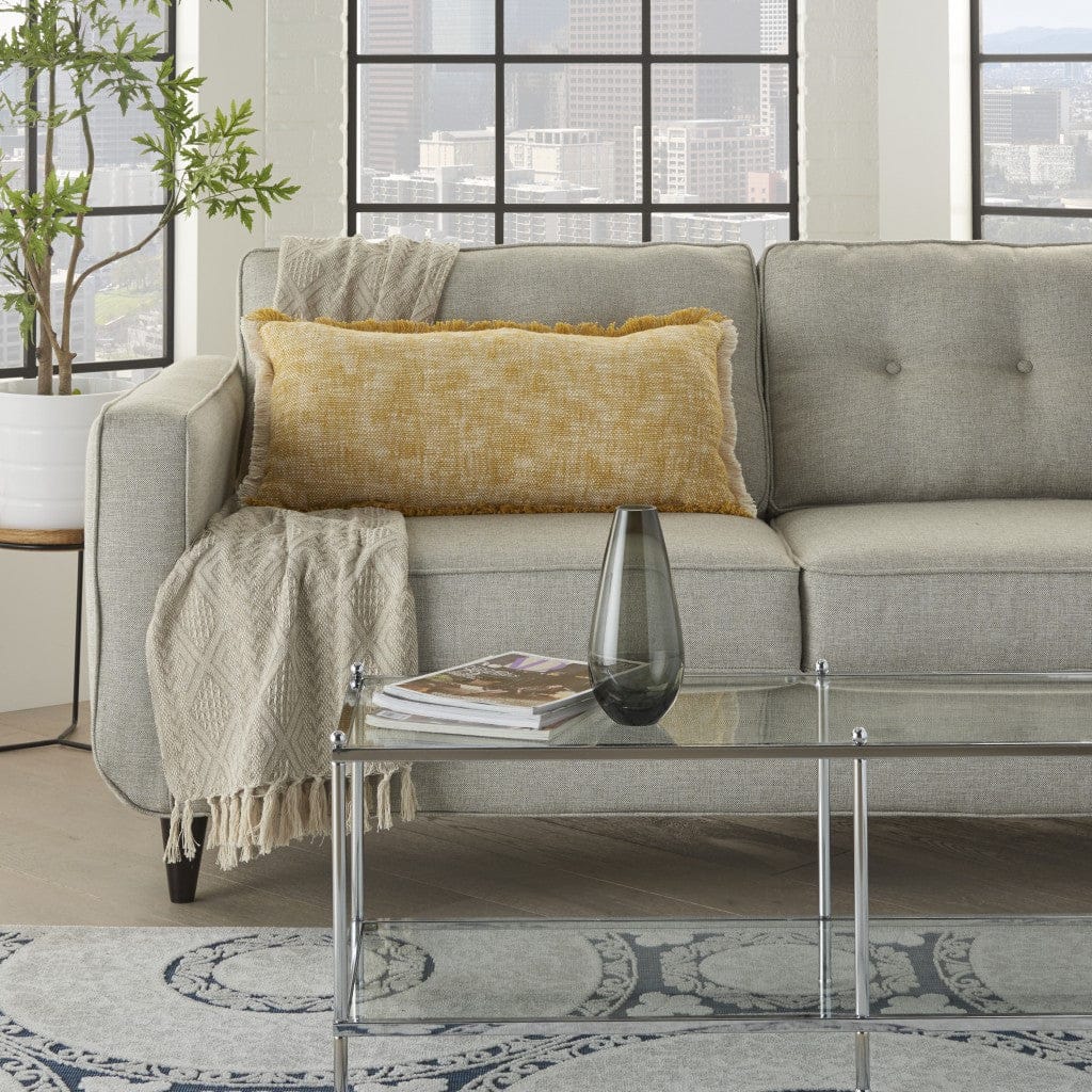 Add some beautiful color and style to your sofa, bed, or favorite chair with this dreamy Mustard Hand Woven Throw Pillow. A gorgeous weave that blends color with a creamy mustard and is lightly textured. There is frayed fringe all around the edges that alternates between color and ivory giving this pillow a unique and designer look. Generous in size this pillow is a great option for stylish low back support. 14" x 30" x 5"