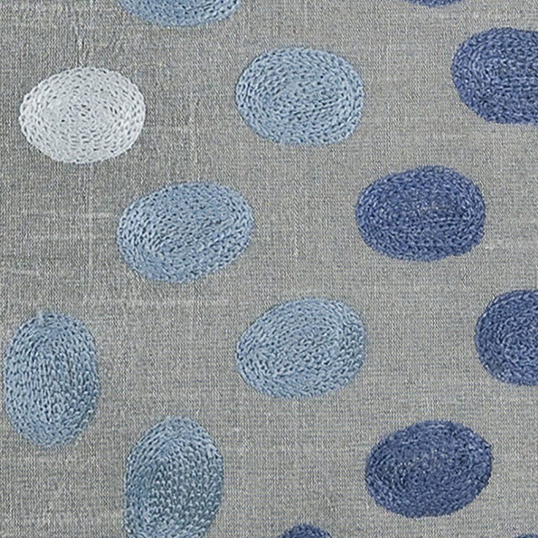 Tuft embroidered on a natural cotton casement, this pillow features a light natural embroidery. Medium nap height add dimension and medium rexturing. Mirrow backed crystals are hand applied to accent the sparkle of the winter season. This snowflake pillow is framed by a silver lamae constrast welting. It also sports a solid matching back with a hidden zipper closure for ease of fill