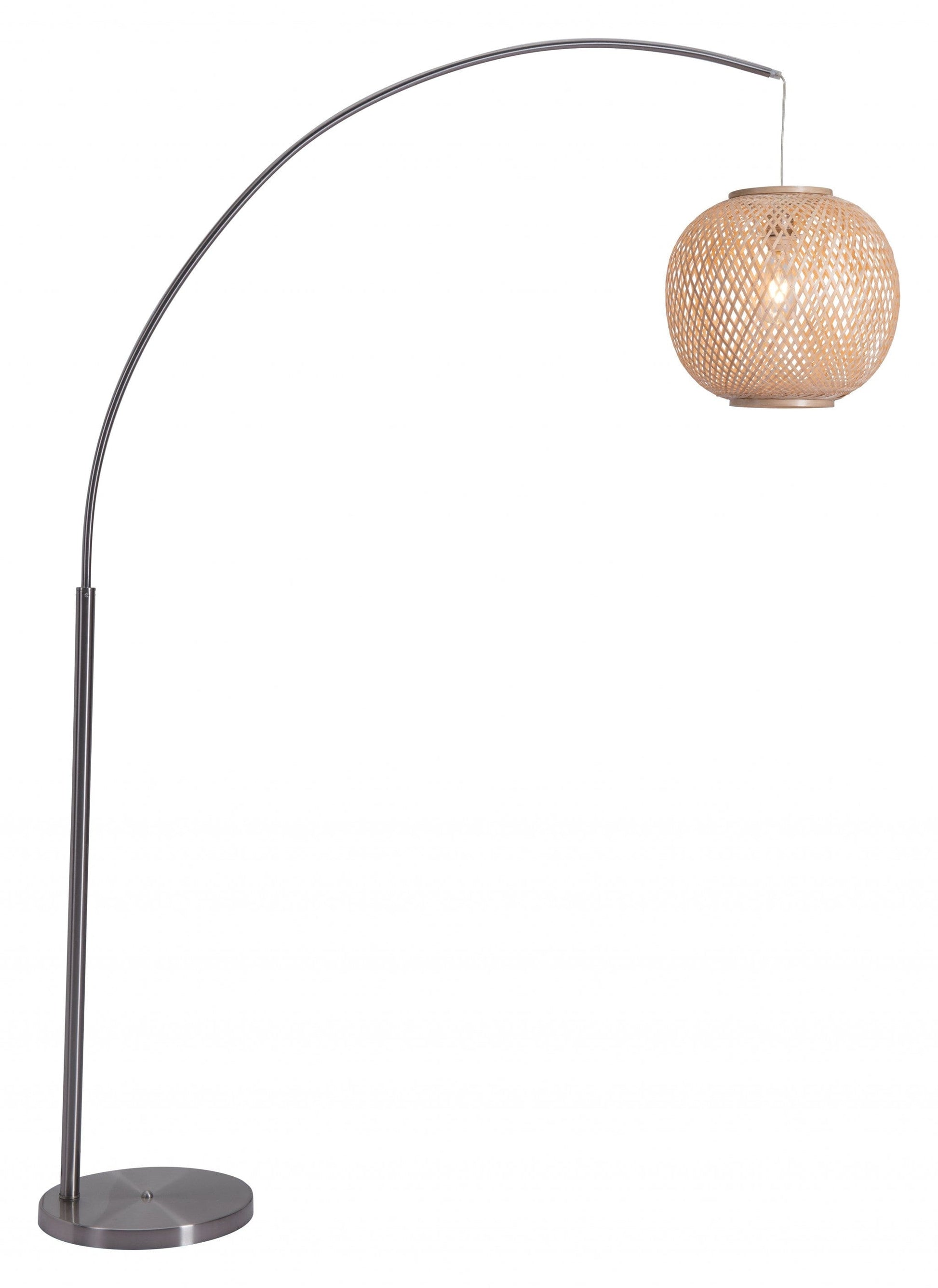 This Natural Cozy Arching Floor Lamp combines a both natural and modern style. This piece is perfect for acting as both decoration and a light source. The free-hanging woven natural color sphere around the bulb will add a nice calming feel to any space. The delicate arch of the lamp makes this great to use it as a reading light in your living room or next to a table in your bedroom. 72.8” H x 54.3” W x 15.0” D