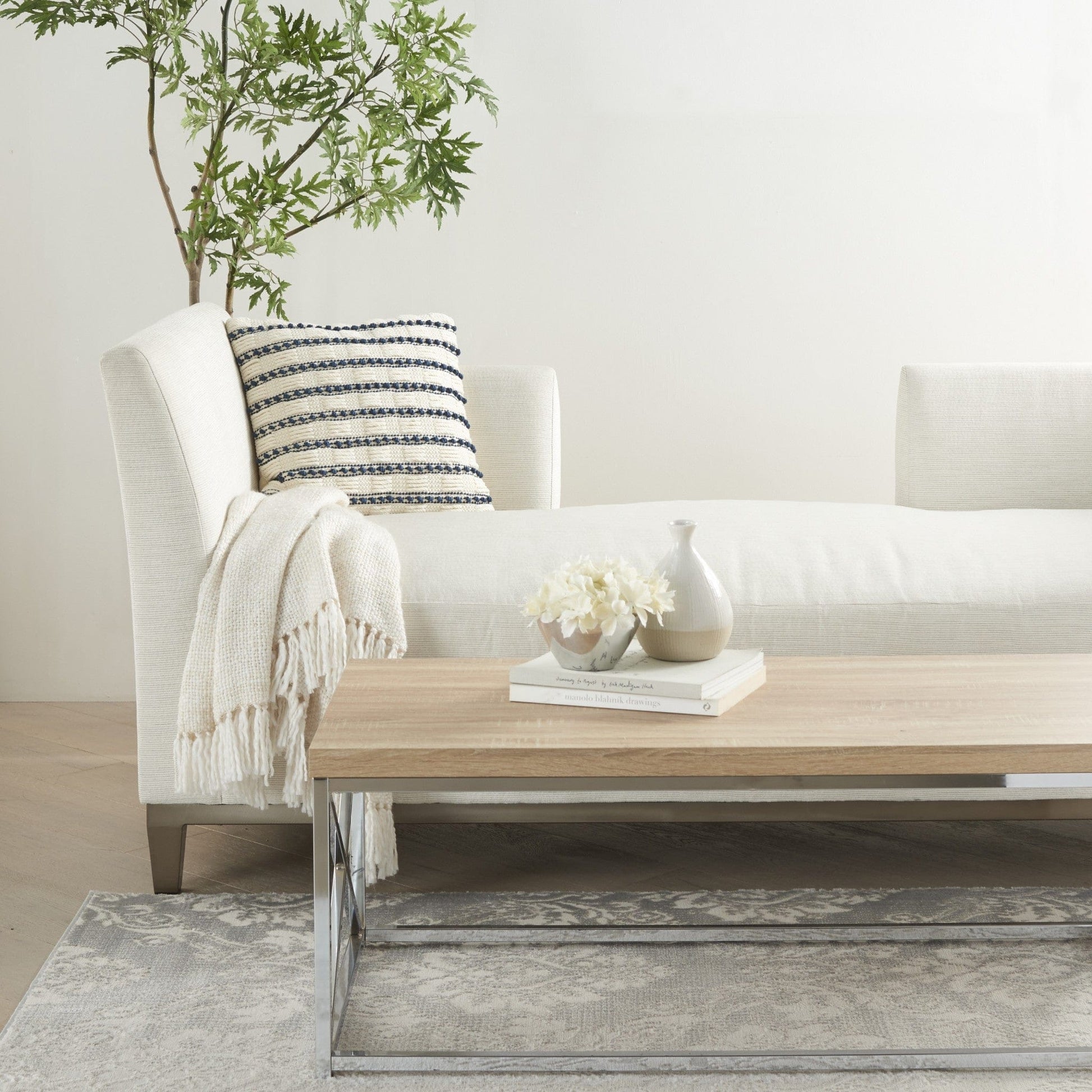 Brighten up your bedroom or living area with this Navy Blue and Ivory Textured Stripes Throw Pillow which is bound to seamlessly add to your contemporary and casual decor. The textured stripes are meant to deliver an amiable and welcoming feel while being playful to touch and hold. The texture and feel aren’t going anywhere over the years due to the use of 60% cotton and 40% polyester fabric that is also easy to wash. The navy blue and ivory tones are made to mend well with pastel colors or be eye-catching in darker spaces in an alluring way. 18” x 18” x 5"