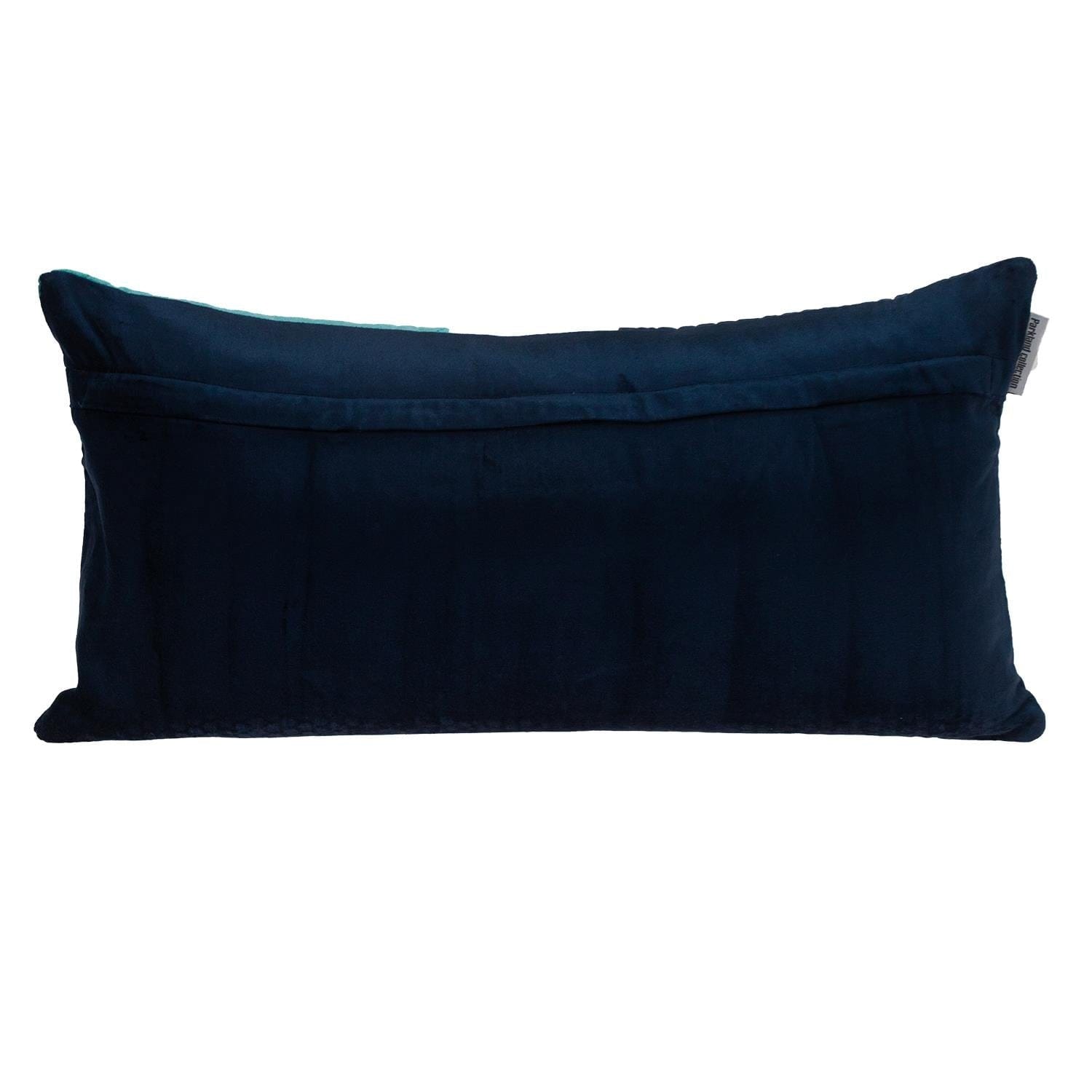 Crafted to perfection the Navy Blue and Sea Blue Quilted Colorblock Velvet Lumbar Throw Pillow will completely revitalize your personal space. The beautiful soft and fluffy velvet texture of the quilt workmanship is distinctly visible in it's vertical and diagonal lines, that deliver exquisite comfort. Easy cleaning of the cushion is offered in terms of a hidden zipper that is neatly concealed on the bold color background. Fall into complete pleasure with this three color toned throw pillow skillfully designed to complement your delicate decor space. 12" x 24" x 4"