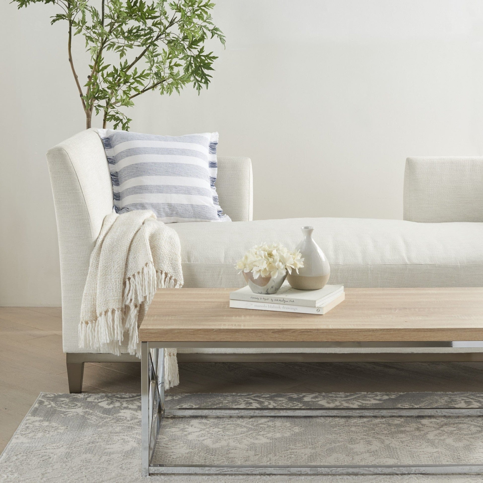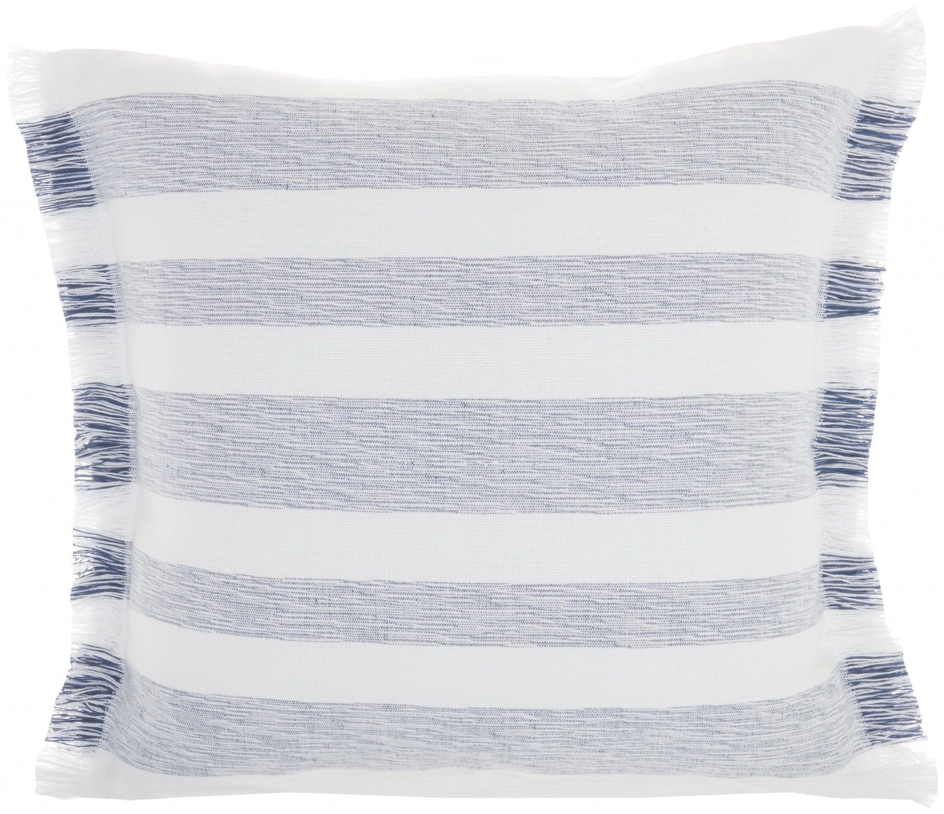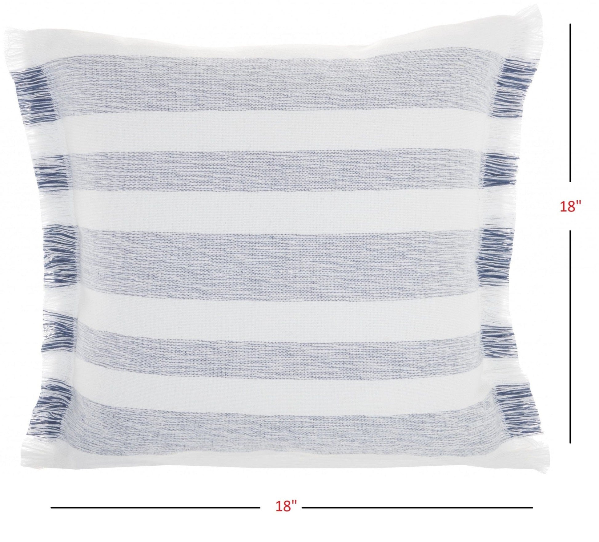 Induce a sense of warmth and coziness into your place with this Navy Blue and White Soft Stripes Square Throw Pillow that flaunts a relaxed and laid-back feel in its simplicity. Showcasing clean-lined alternating stripes in pastel hues of navy blue and creamy white in the middle with ornamental fringes on the edges gives off a farmhouse appeal. Made to stand the test of time, this 100% cotton-made pillow is super durable, easy to clean, and more breathable. Pair this soft and sumptuous throw pillow with neutral shades or vibrant hues for a blissful harmony or a striking contrast. 18” x 18” x 5”