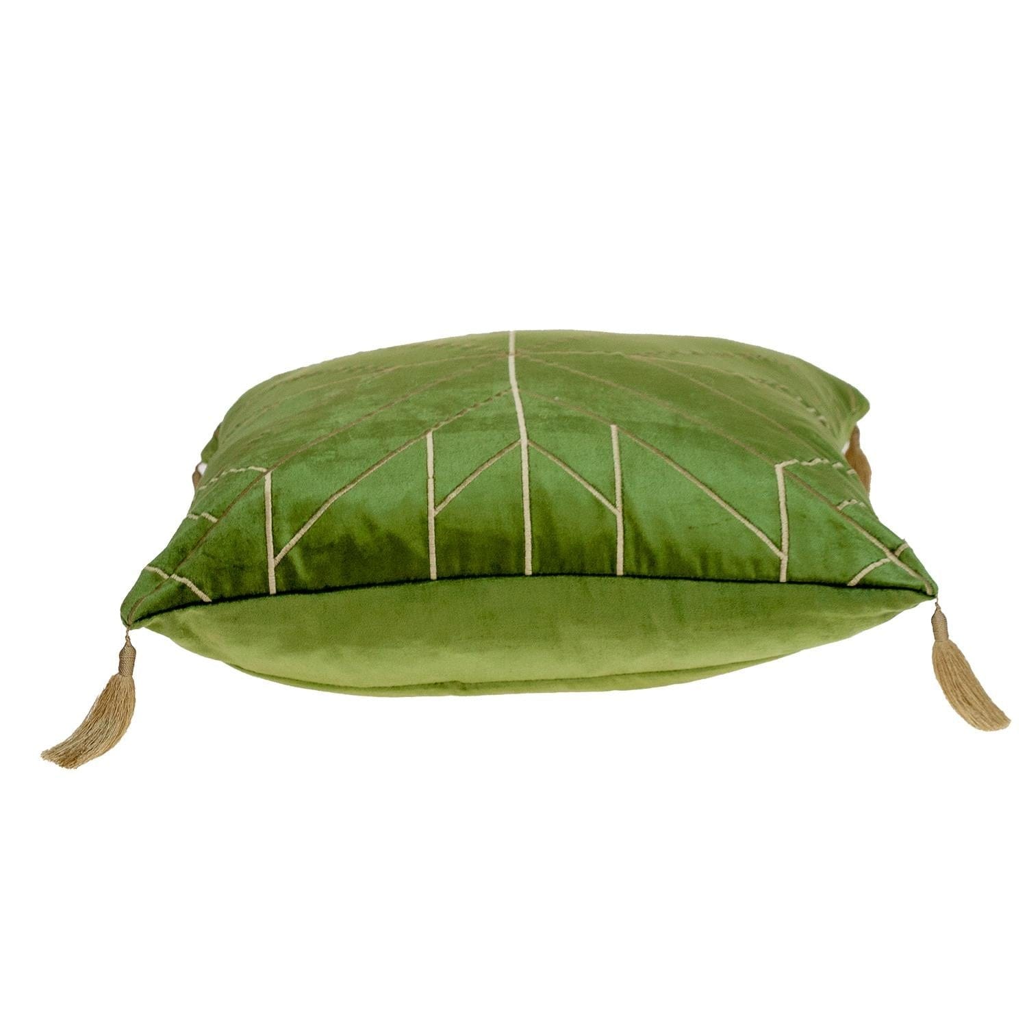 Olive and Gold Geo Velvet Throw Pillow with Gold Tassels