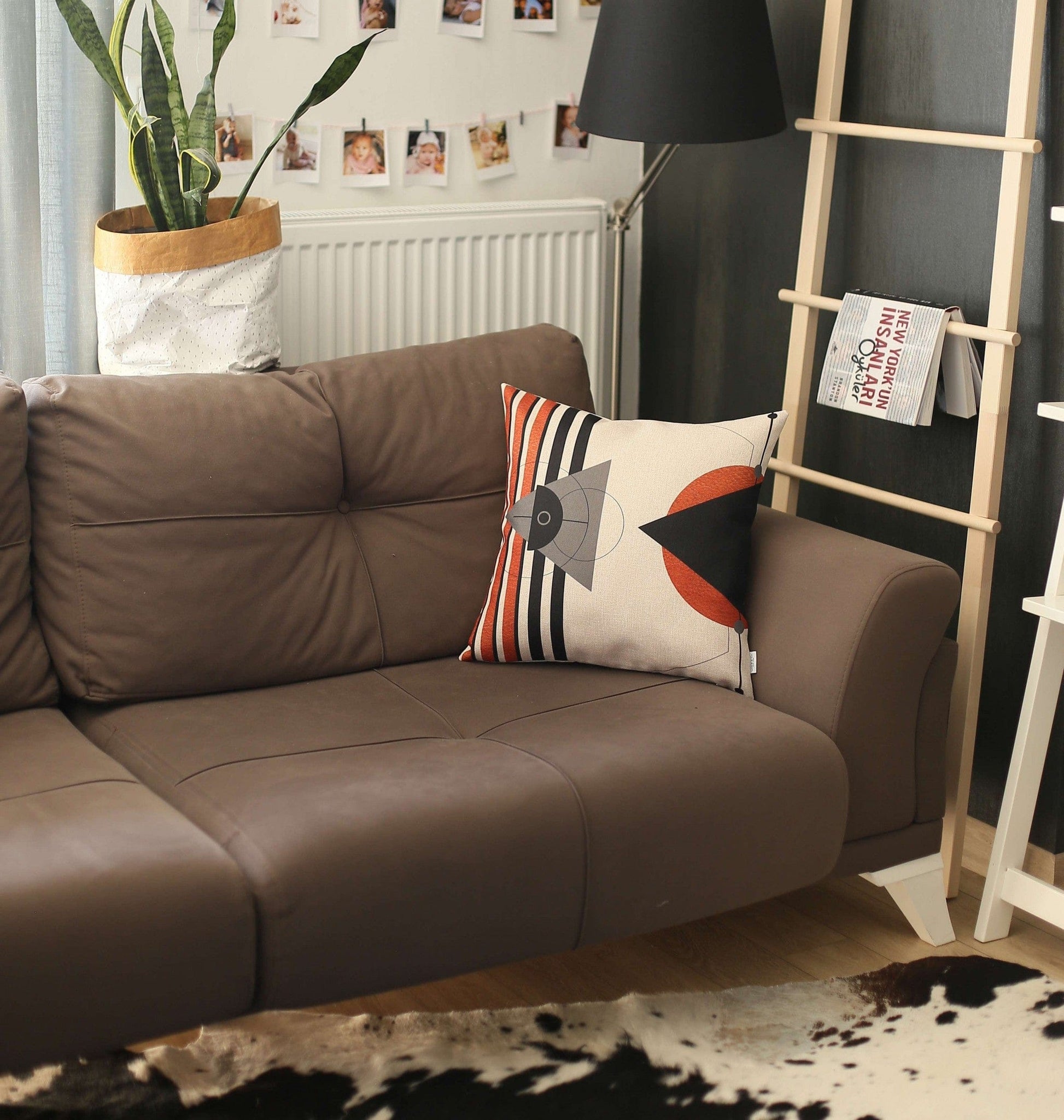 Bring color and class in the perfect package into your living space with this Orange and White Modern Geometric Throw Pillow. The unique geometric design is uplifted with the bold orange, black, and gray color combination on the ivory base to create a brazen boho-chic design that will suit most modern spaces. Made with quality in mind, this cover uses high-quality OEKO-TEX Standard 100 certified polyester fabric in the making by Turkish artisans. To keep the shine on this pillow for years on end, it should be spot cleaned in case of marks and stains. A clean, seamless look is achieved with all-around hidden zipper closure, while the soft feel comes from the luxurious poly filling inside. Make your living space look and feel fun, lively, and classy all at once with this beautiful throw pillow flaunted on the couch. 18” x 18” x 1”