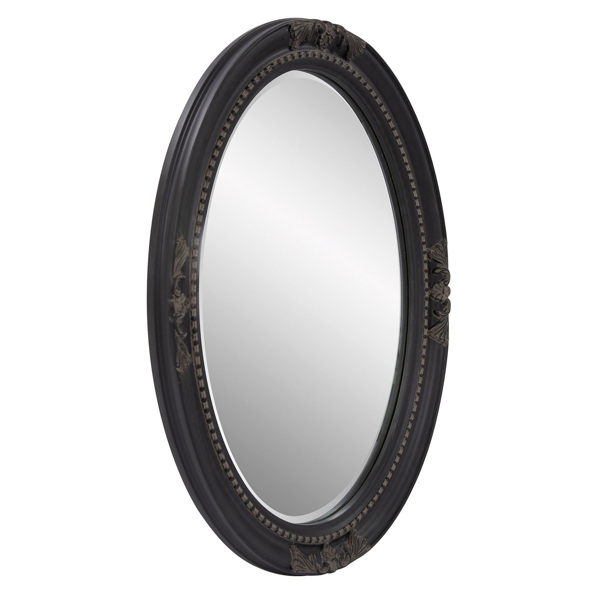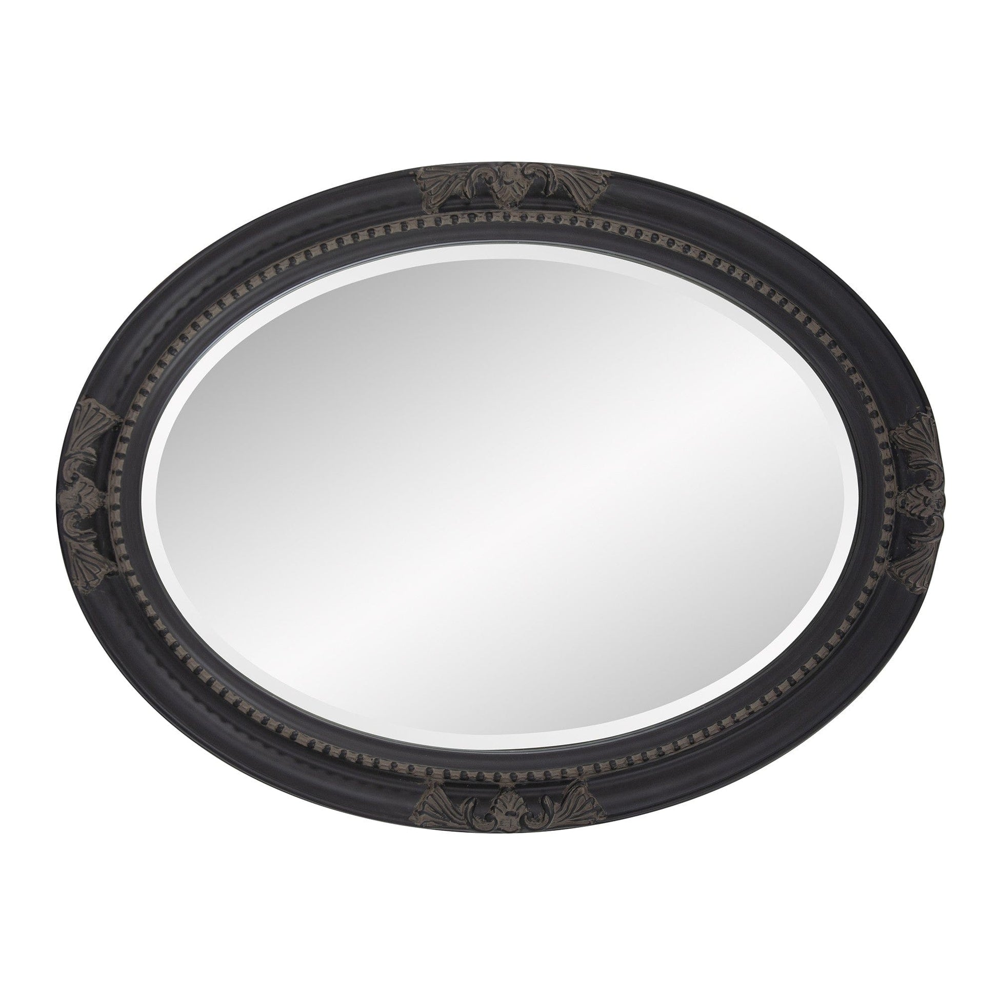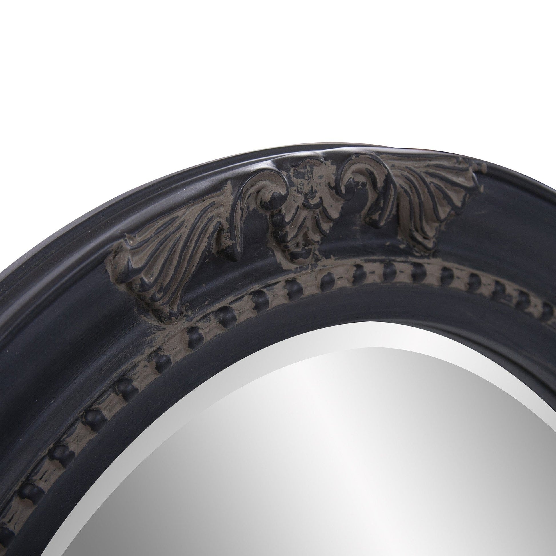 This mirror features an antique black finish. The oval frame is made from wood and is accented with a beaded textured inset and decorative adornments on each side of the frame. For more added detail the mirror features a one inch bevel. Its traditional style makes this mirror a favorite for bringing some flair to your decor. This simple yet stunning piece would be a great addition to any room. It is a perfect focal point for an entryway, bathroom, bedroom or any room in your home. D-rings are affixed to the back of the mirror so it is ready to hang right out of the box in either a horizontal or vertical orientation!