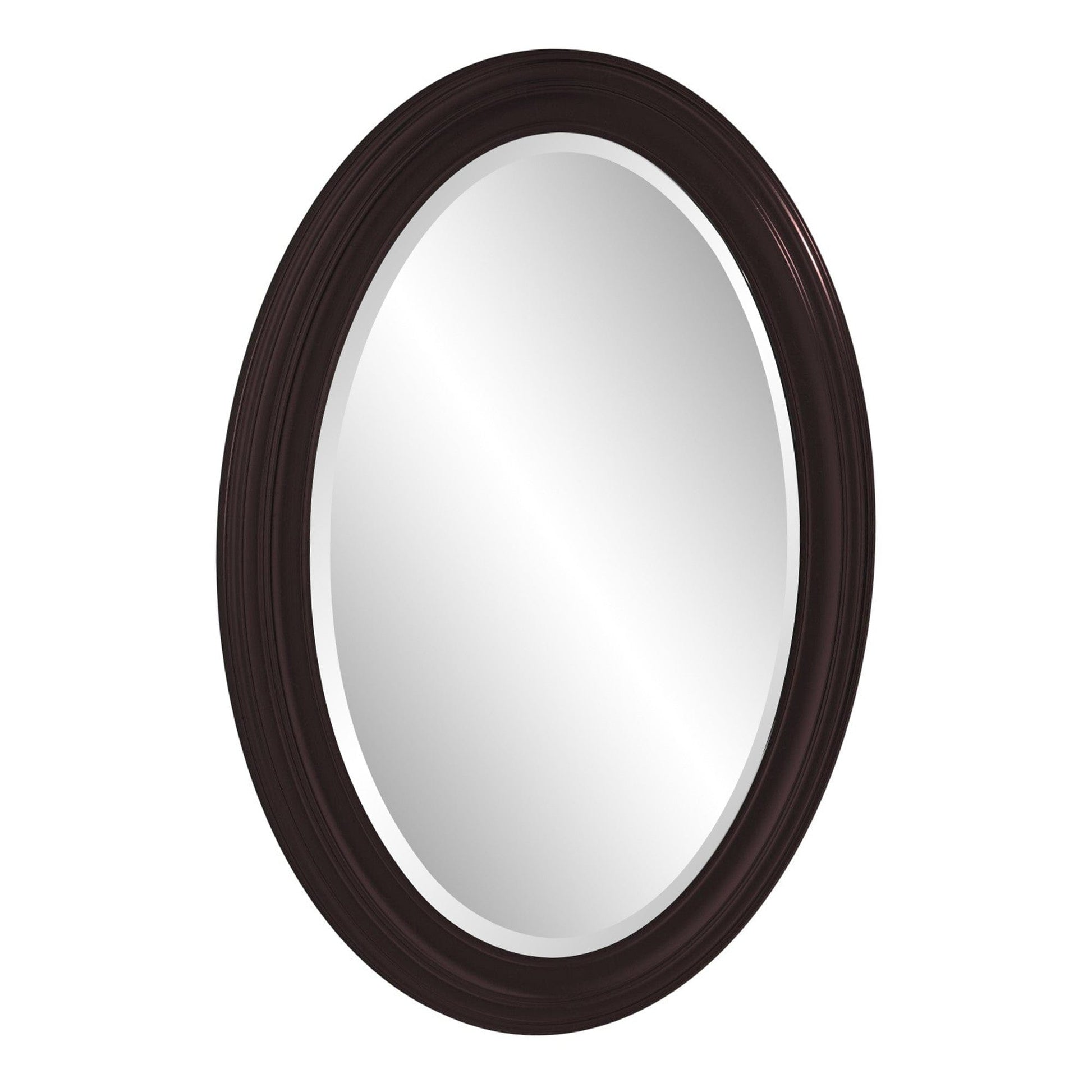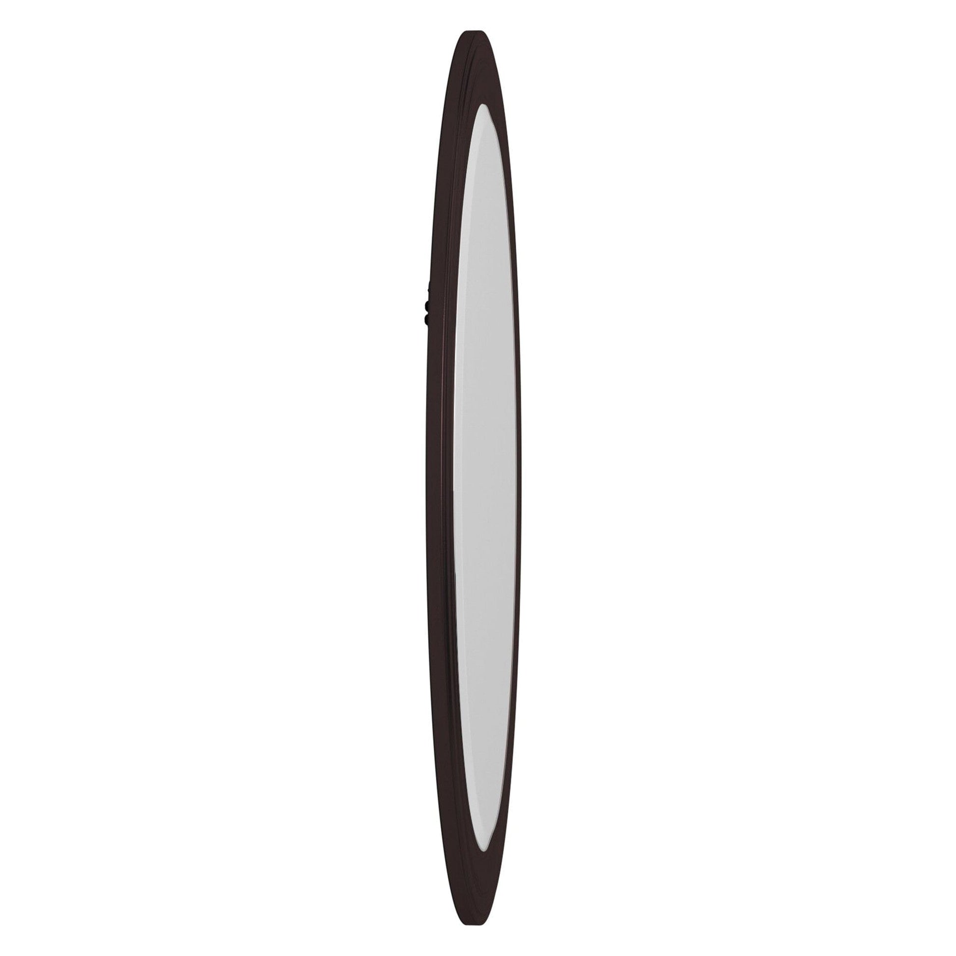 This features an oil rubbed bronze finish. The oval frame is made from wood and is accented with grooves for added depth and character. For more added detail the mirror features a one inch bevel. Its style makes this mirror a favorite for bringing some flair to your decor. This simple yet stunning piece would be a great addition to any room. It is a perfect focal point for an entryway, bathroom, bedroom or any room in your home. D-rings are affixed to the back of the mirror so it is ready to hang right out of the box in either a horizontal or vertical orientation!