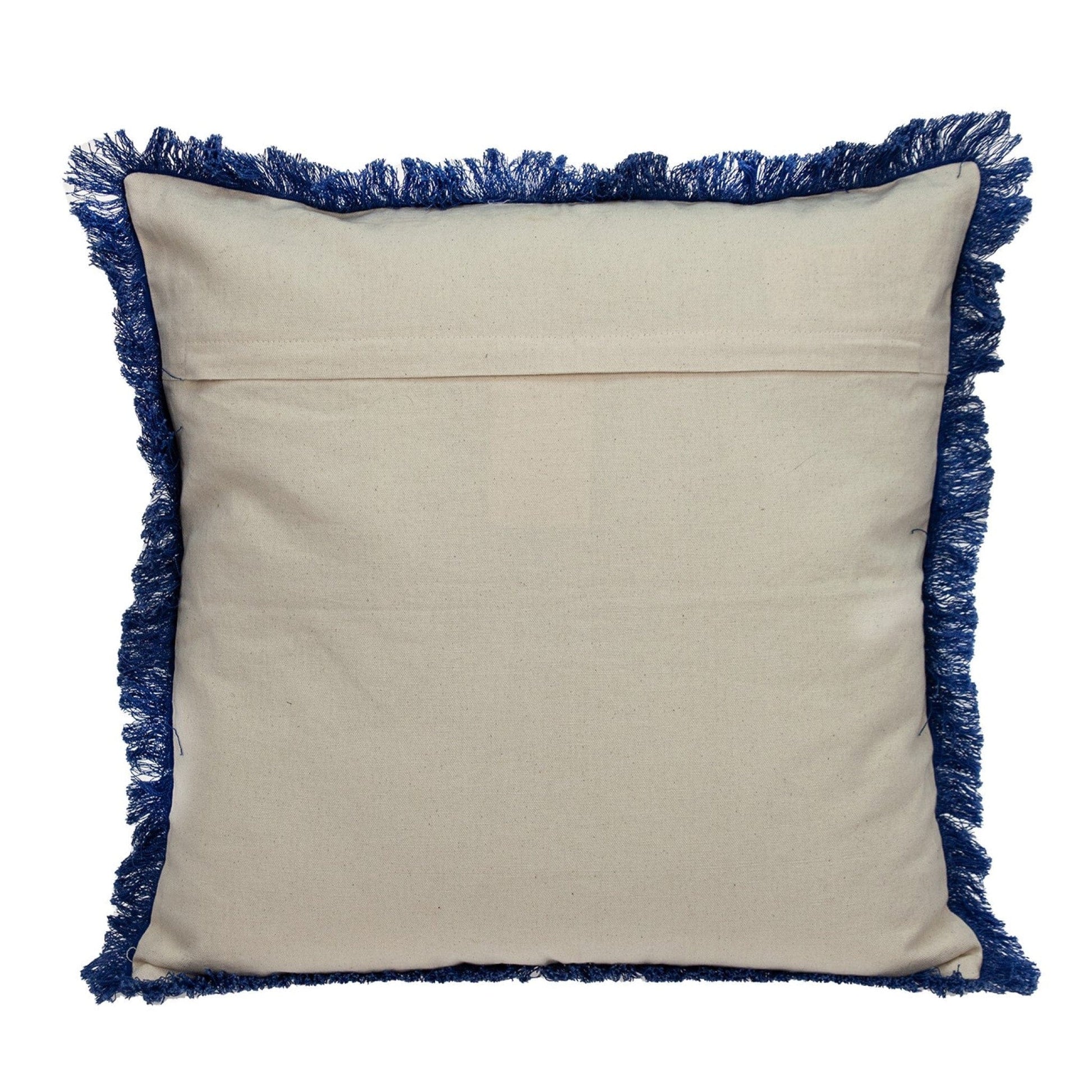 If you like unusual combinations in colors and decor, the Oyster Beige Throw Pillow should interest you. Made of 100% cotton, this throw pillow carries a simple design, adding elegant accent to your furniture and interior. What makes it unique is the contrasting blue-colored fringes along the sides, which adds an edge to the overall look of the pillow. 20” x 20” x 5”