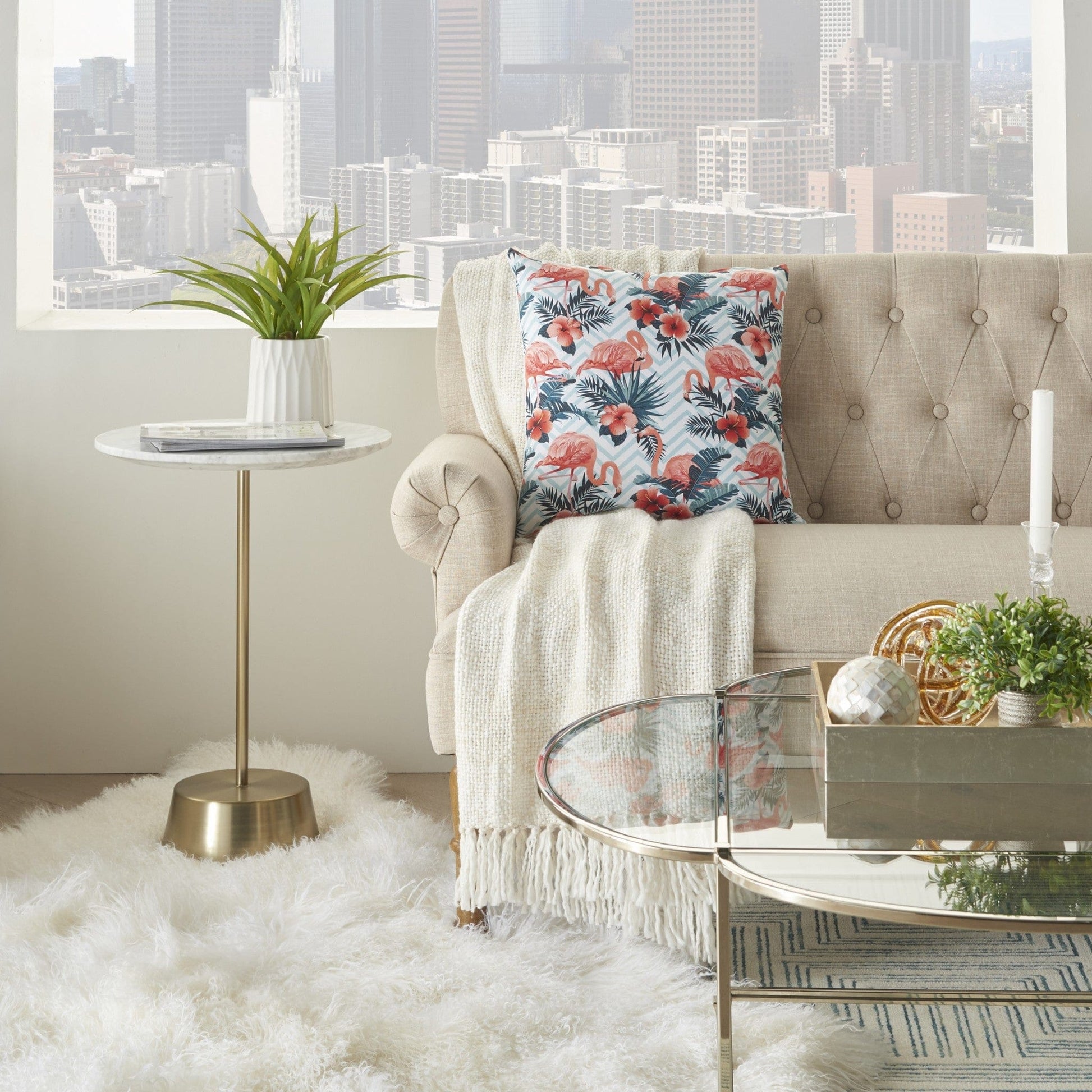 Make your couch the enticing centerpiece of your living space with this Pink Flamingo Chevron Throw Pillow at its core. The intricately patterned artwork plays with the strong mix of an array of colors to engage every passerby's view in the most nonchalant way. Each angle and corner of this vibrant and fun throw pillow is engineered to make the whole living space feel unorthodox but elegant. The soft-touch 100% cotton fabric makes it the centerpiece for comfort and relaxation. Tie this in with a bold backdrop of any kind and see your modern-contemporary vision come to life. 18” x 18” x 5”