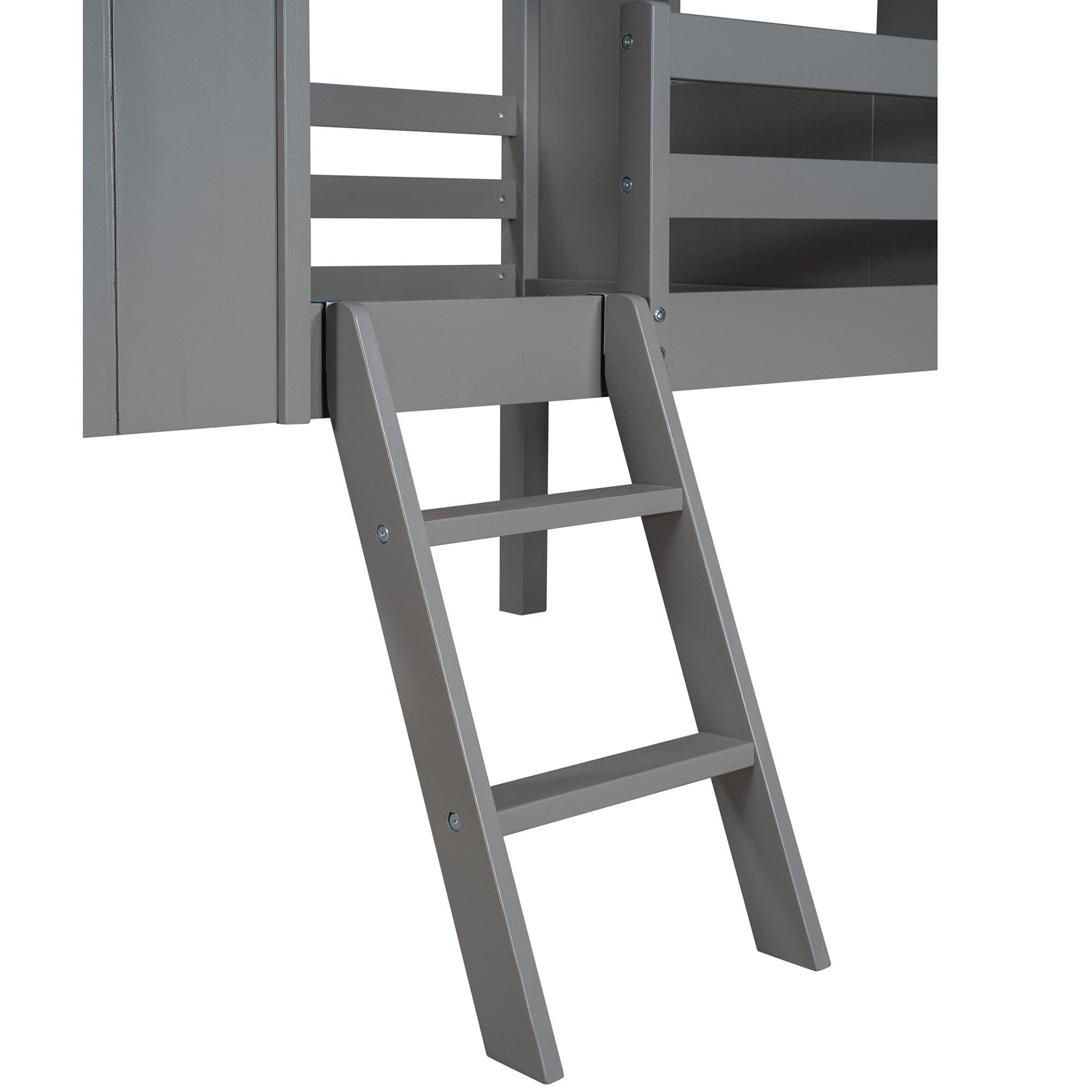 Playhouse with Windows and Partial Roof Antique Gray Twin Size Loft Bed