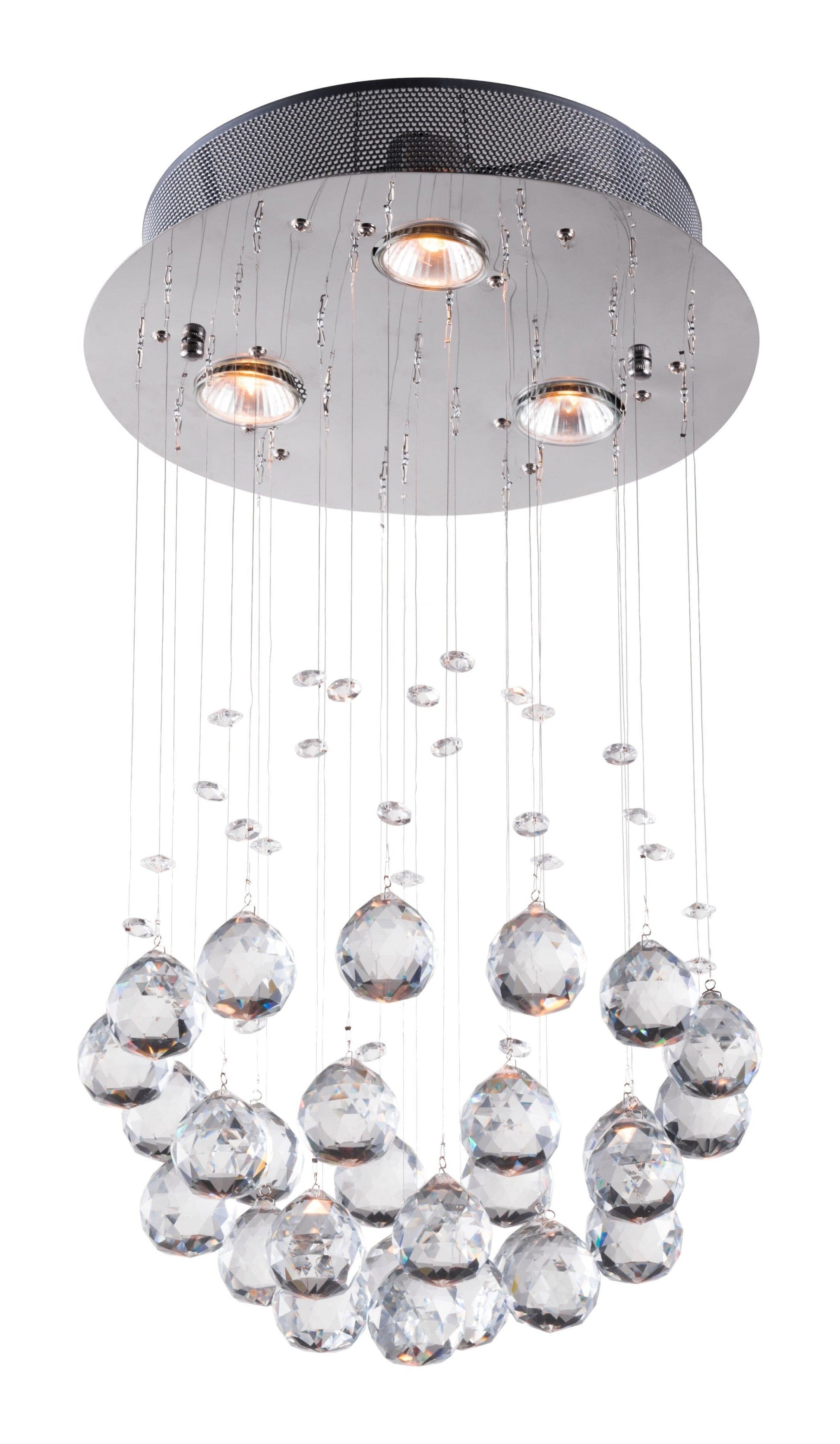 This Rain Drops Ceiling Lamp is exactly what it is named. This lamp is stunning as it looks like a still image of elegant rain drops falling from the sky. Crafted from clear crystal and strong steel this lamp is a work of art. With its three bulbs shining down from above over the crystals this creates a beautiful immersive light source for any space. 19.7” H x 11.8” W x 11.8” D