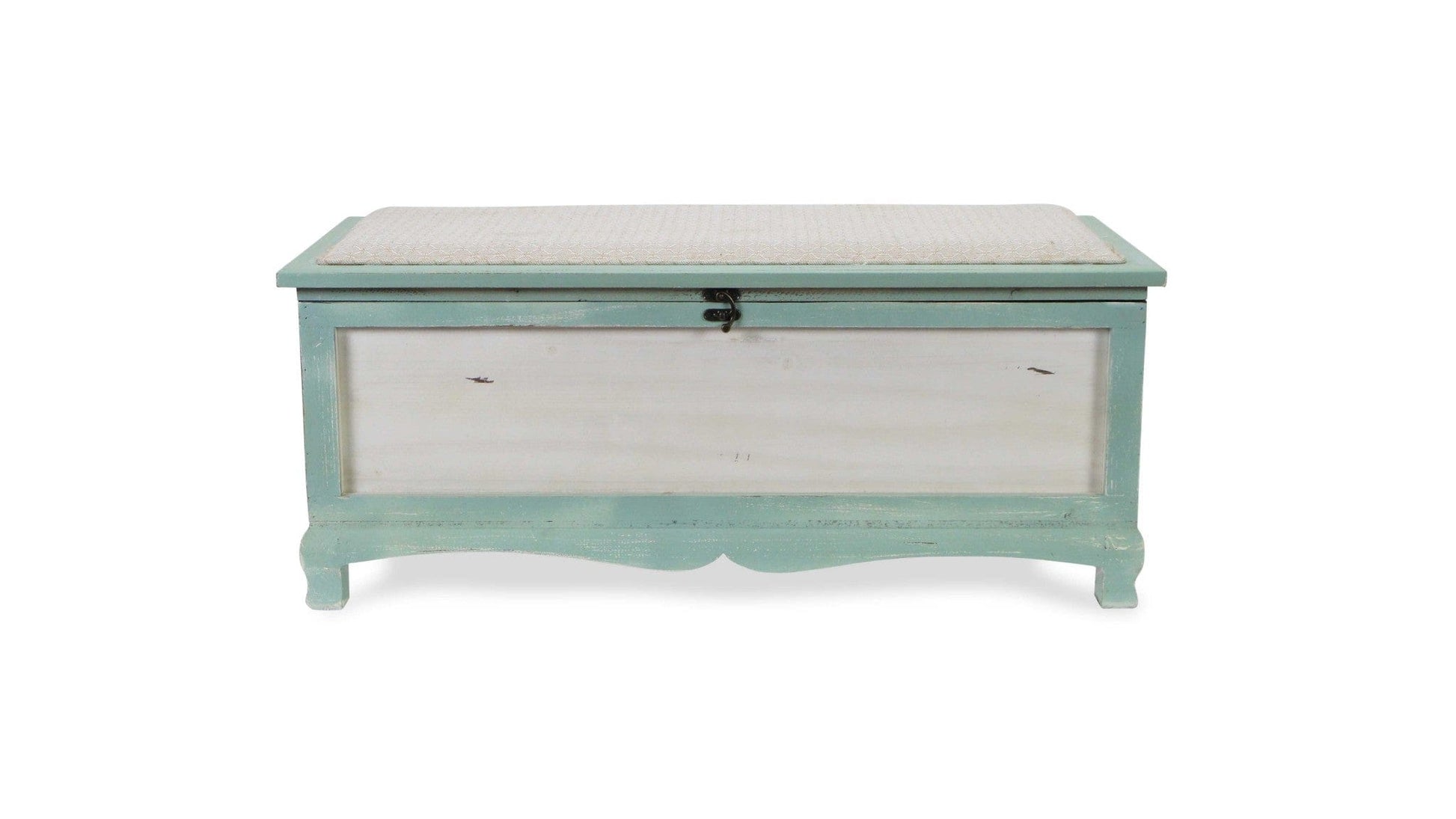 Rectangular Green Wooden With Seat Cushion And Inside Storage Bench