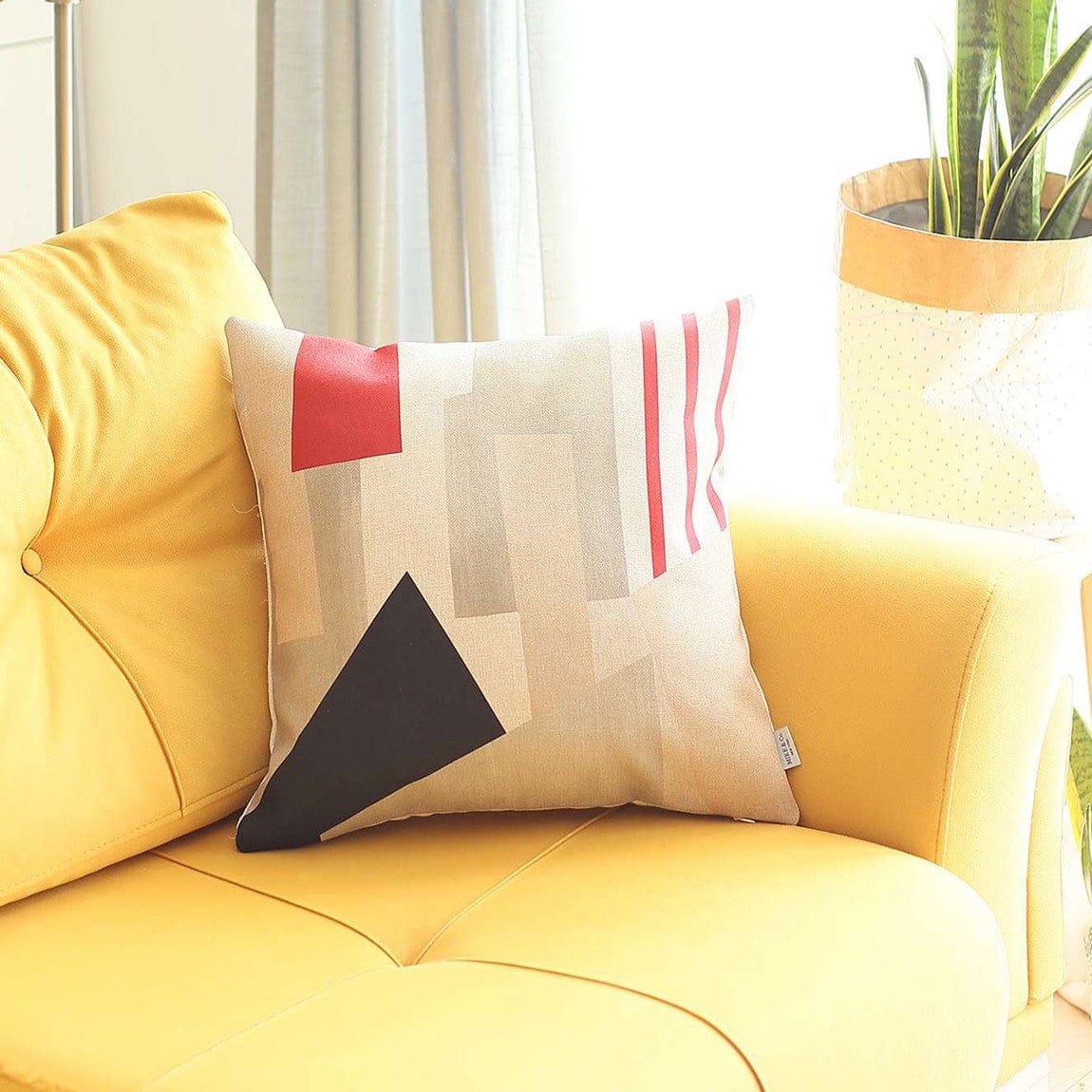 Spruce up your living area by adding this Red and White Abstract Geometrics Throw Pillow that exudes energy while being sophisticated. The multi-directional geometric design gives a welcoming aura due to the classy combination of red, black, and gray over an ivory base. The soft, comforting look and feel are only achieved through the fine craftsmanship of Turkish artisans. Durability and quality are guaranteed due to the use of 100% polyester fabric which is OEKO-TEX standard 100 certified. It features a hidden zipper closure for a seamless finish all around and the soft poly filling insert makes this piece even cozier and inviting to the touch. To ensure the beautiful allure lasts for ages, you only need to spot clean when marks and stains occur. The contemporary design and color choices make this decorative pillow an excellent complement for a variety of indoor spaces and styles. 18” x 18” x 1”