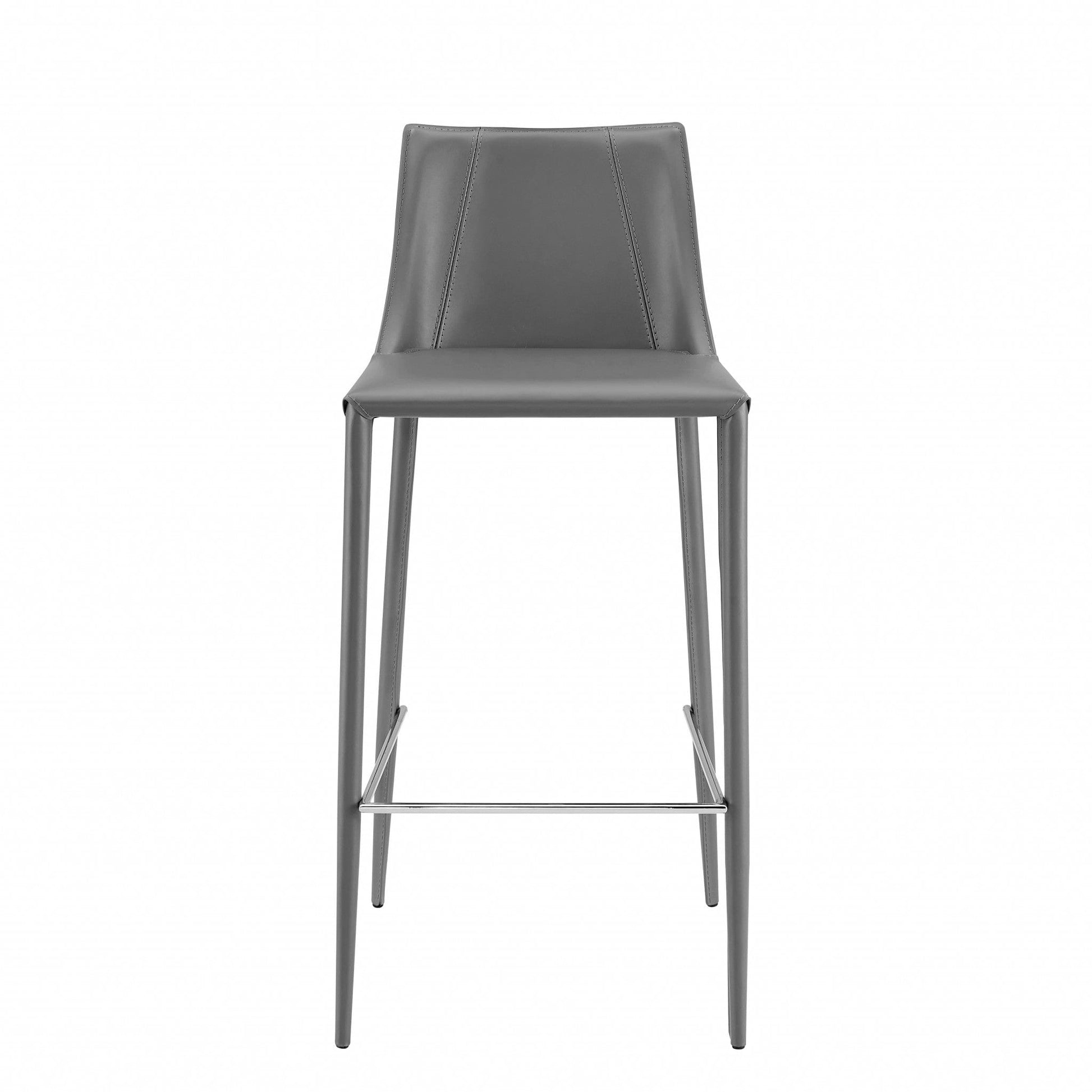 The perfect way to add a touch of sophistication to any space in your home, this Rich Gray Faux Leather Counter Stool combines design and comfort beautifully. In a unique design twist, the frame is covered in a a rich looking dove gray faux leather which follows through to the seat and back support of this entire stool. The seat and back have seam details on either side adding a nice touch of design to the overall look. To complete the look and comfort of this chair, there is a three sided footrest in stainless steel for durability and covnenience. You can use this stool in any of your dining or lounge spaces, as extra seating around your home, or as a vanity chair.39.97" H x 18.12" W x 21.07" D