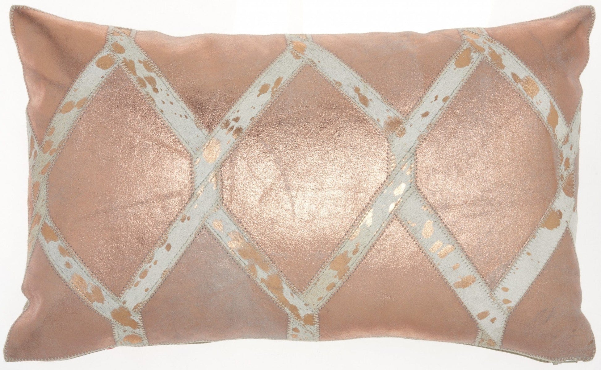 Rose Gold And White Cowhide Lumbar Throw Pillow