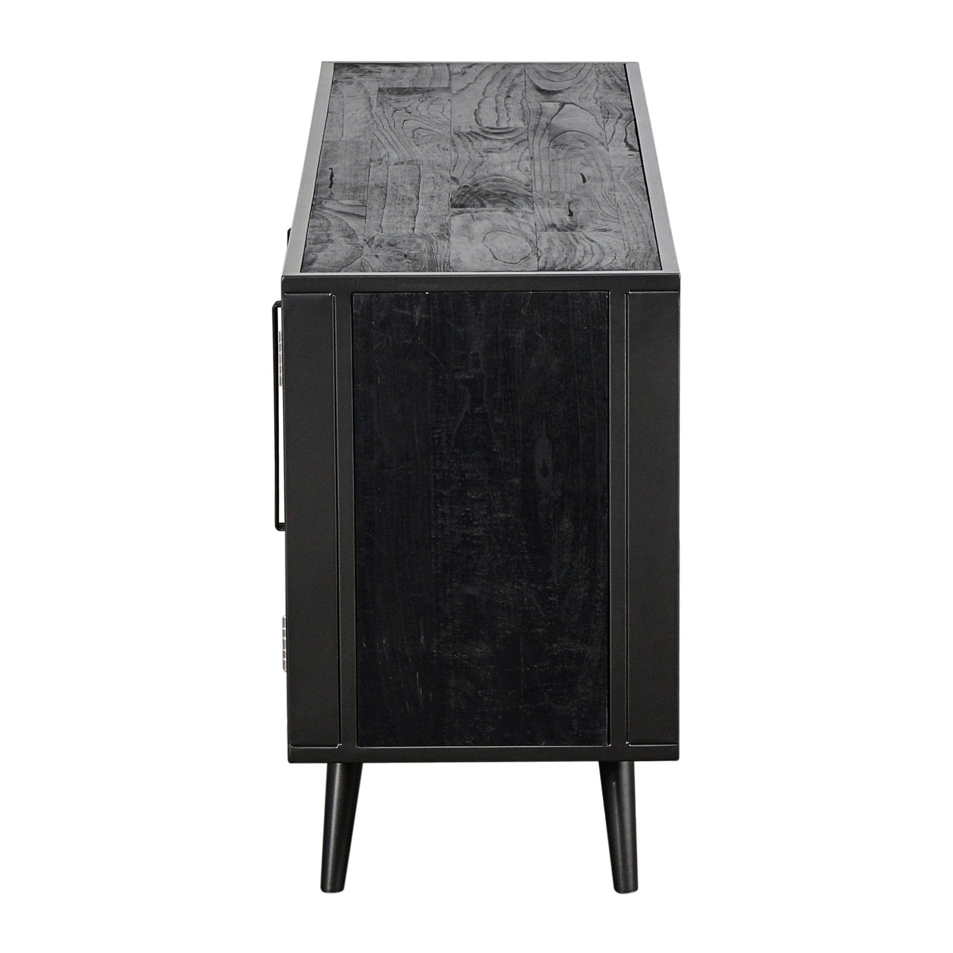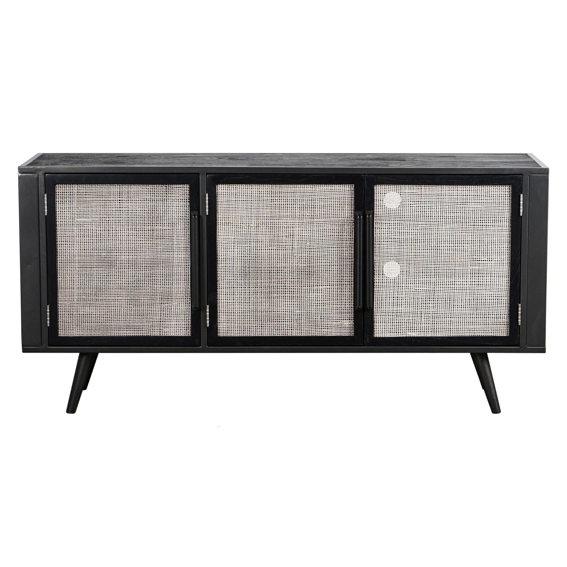 Rustic Black and Rattan Media Cabinet with Three Doors