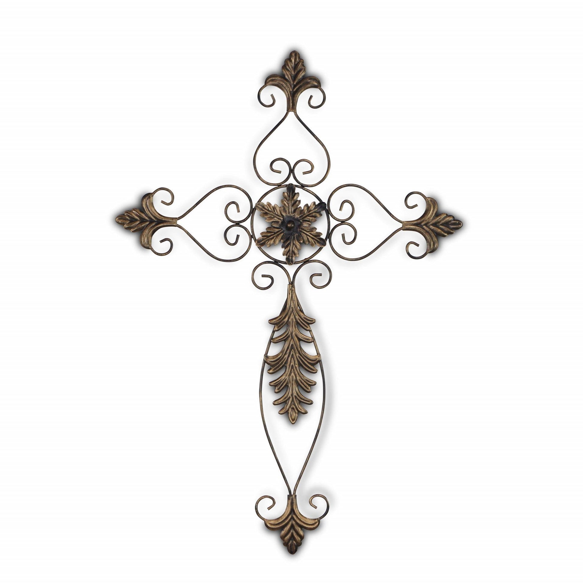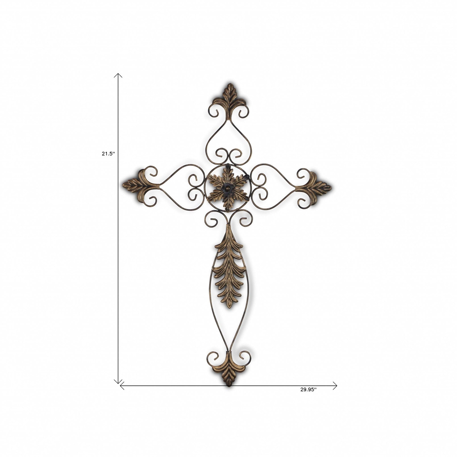 Rustic Burnished Golden Brown Metal Scroll Hanging Wall Cross