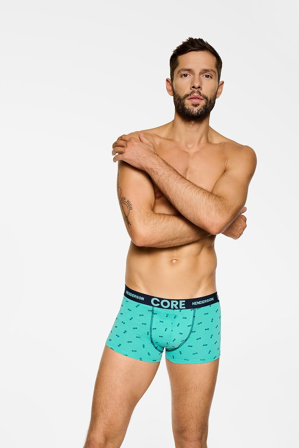Men's cotton boxer shorts with a pattern in two colors. Comfortable outer elastic waistband with Henderson logo. Boxers packed in a box.