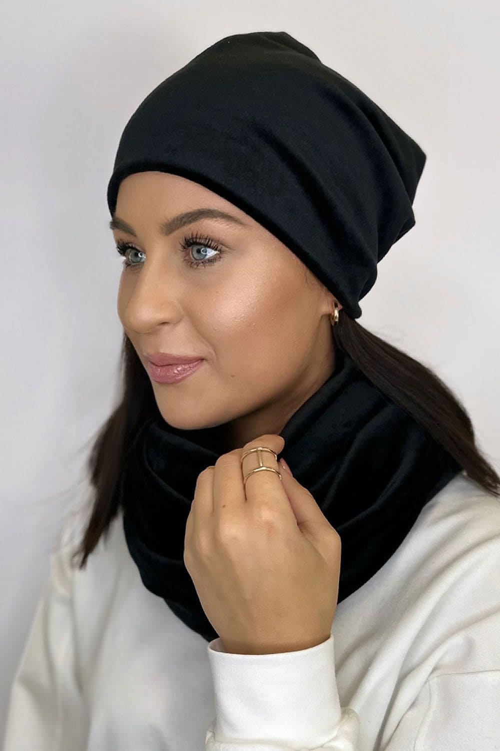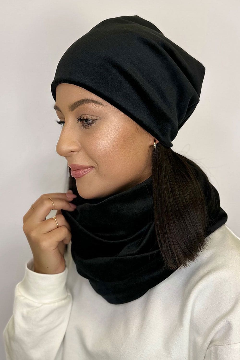 A unique set of cap and chimney available in a wide range of colors. Everyone will choose something for themselves. The set without patterns with a universal cut will fit into most autumn-winter outfits. Made of high quality soft and pleasant velour. Ideally suited for a gift for a loved one. This set is a guarantee of the highest quality at a very attractive price. The set of hat and snood designed and sewn in Poland.