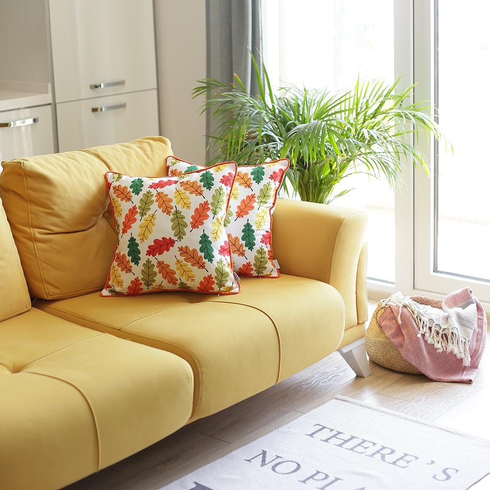 Set Of 2 18" Autumn Leaves Throw Pillow Cover In Multicolor