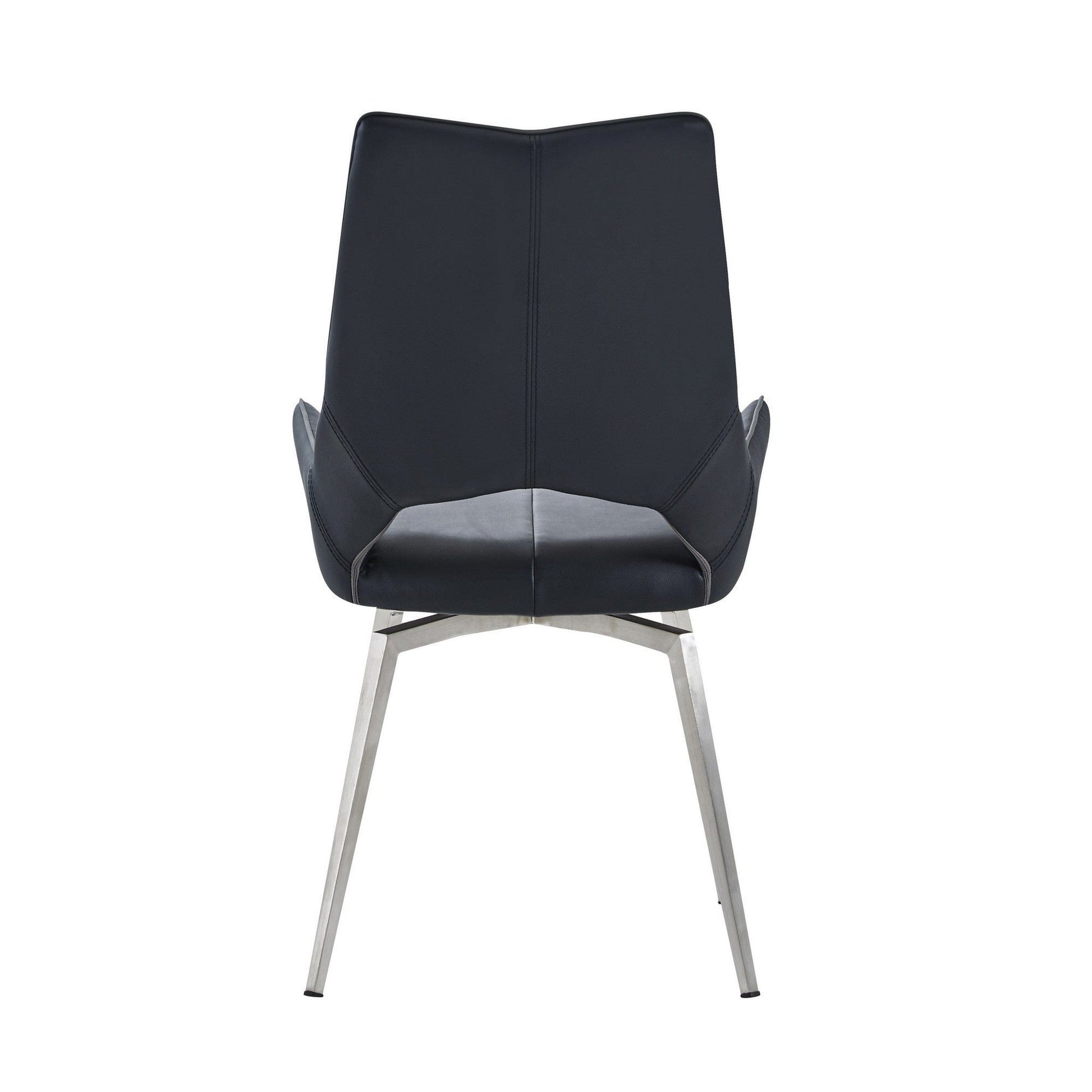 Set Of 2 Black Bucket Style Dining Chairs With Metalic Silver Base