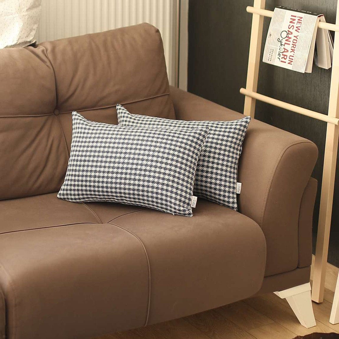 Set Of 2 Gray Houndstooth Lumbar Pillow Covers