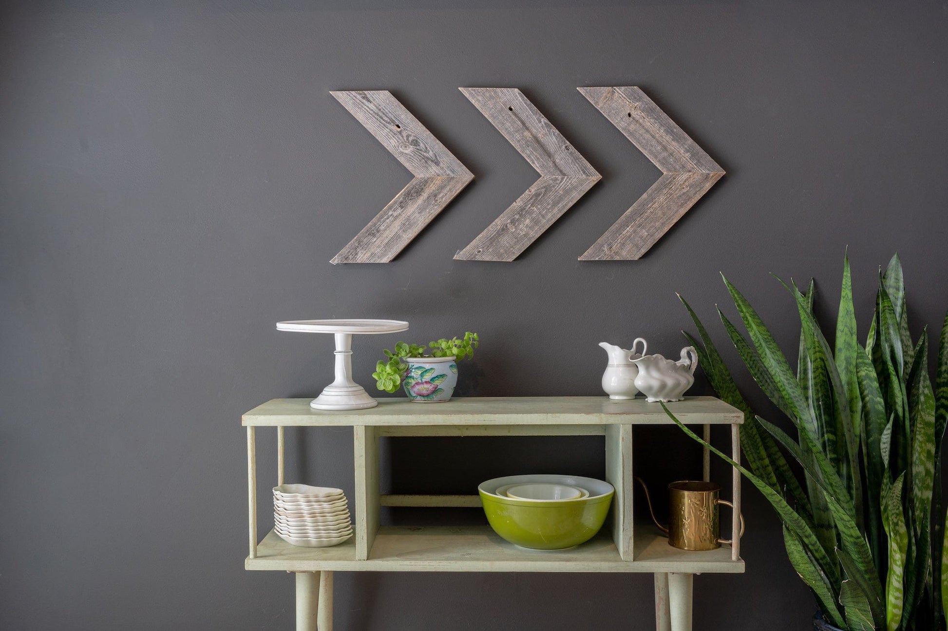 Set Of 3 Rustic Weathered Grey Wood Chevron Arrow