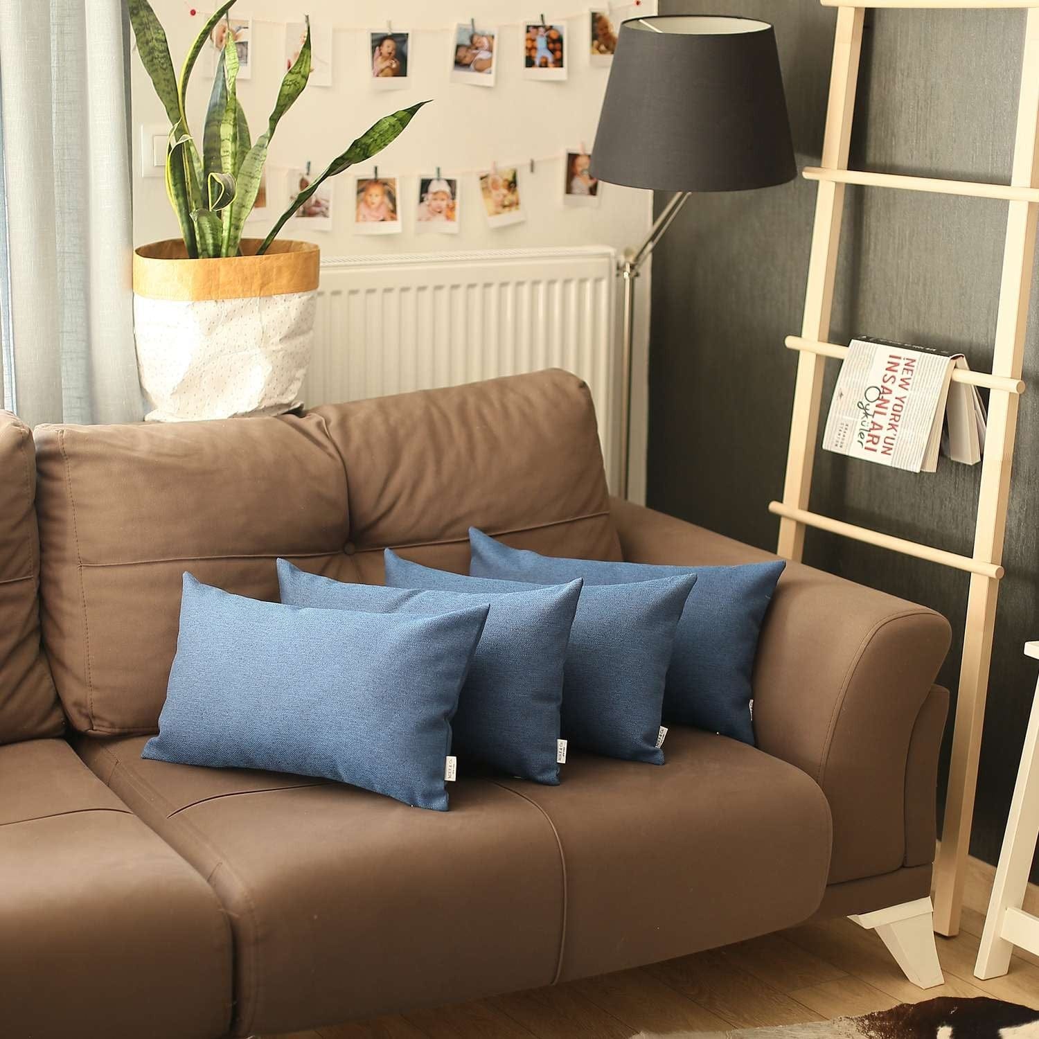 Set Of 4 Blue Jacquard Lumbar Pillow Covers