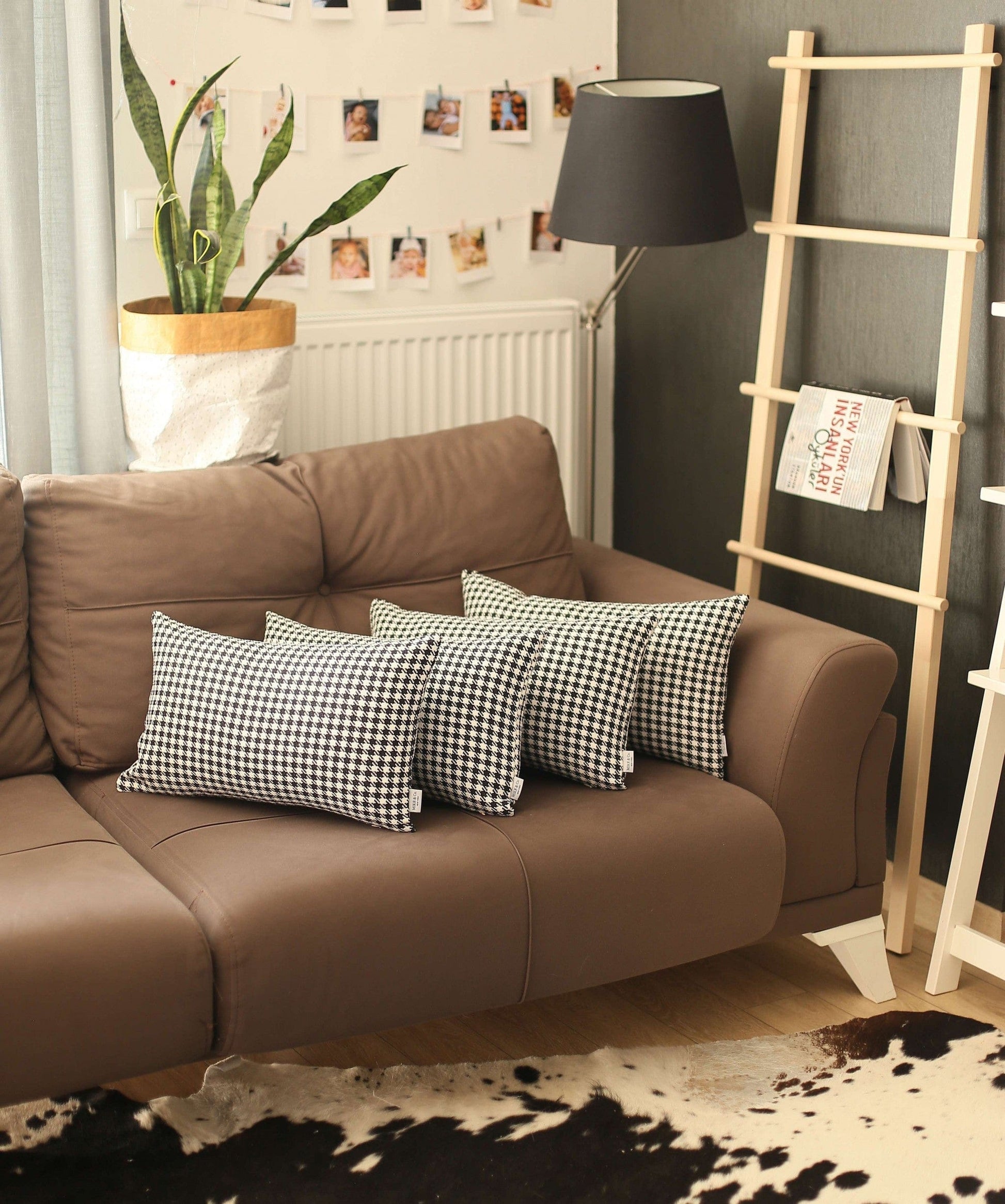 Upholding a rich and luxurious vibe, this Set of 4 Cream Houndstooth Lumbar Pillow Covers will be a sophisticated addition to any modern or contemporary setting. Featuring the classy houndstooth checkered pattern in black over a cream-colored base, each cover accentuates an elegant combination. Flaunting the creativity of Turkish artisans, these pillow covers are handmade of OEKO-TEX Standard 100 certified polyester fabric to ensure quality and product safety that will last for ages with low maintenance. The hidden zipper closure adds to a smooth finish for a soft and sumptuous feel on the touch. Besides serving as a sophisticated accent to complement any furniture, this set of lumbar pillow covers will enrich the ambiance of any modern or contemporary living space. 12” x 20” each. Set of 4.