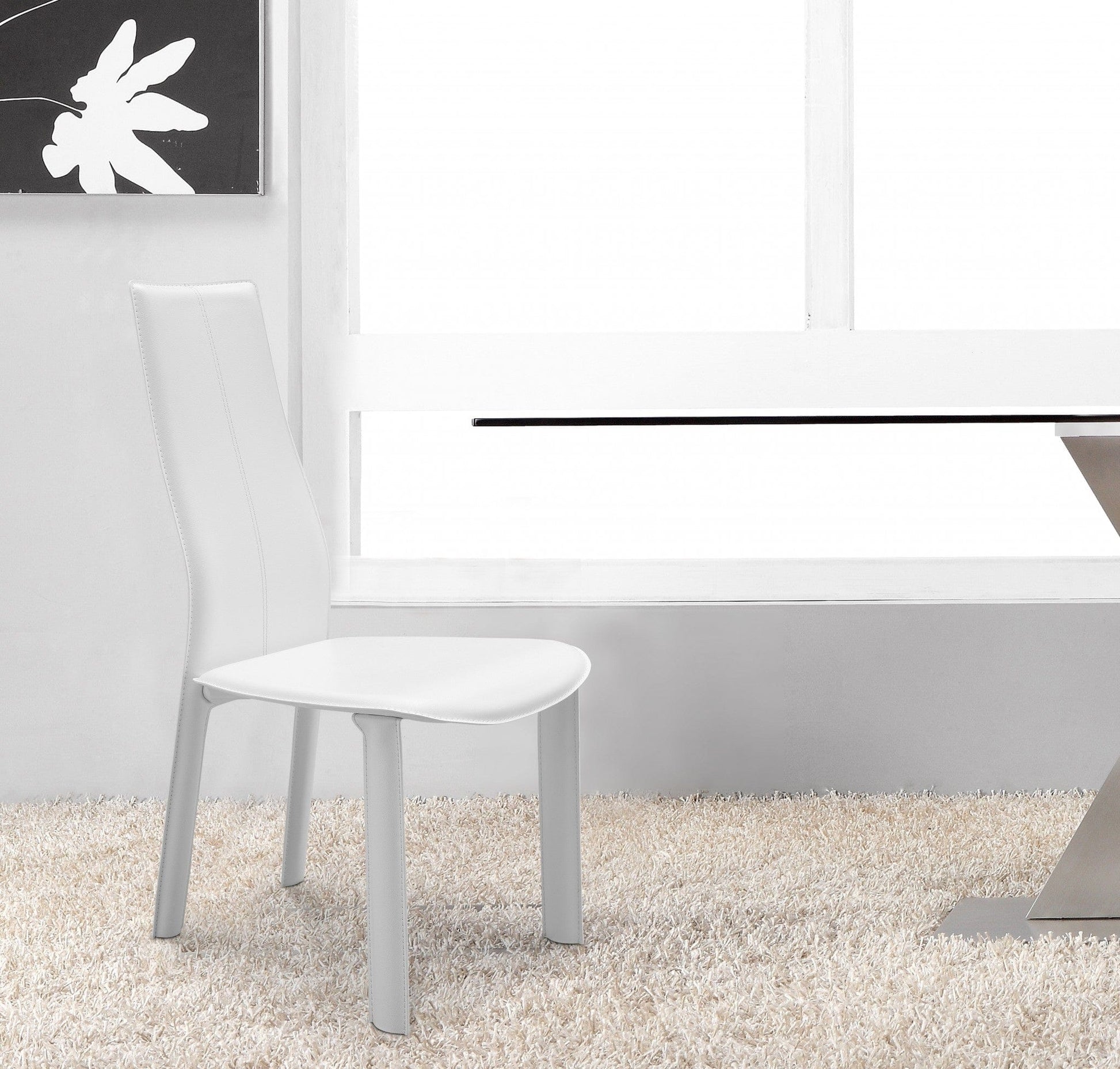 Set Of 4 Modern Dining White Faux Leather Dining Chairs