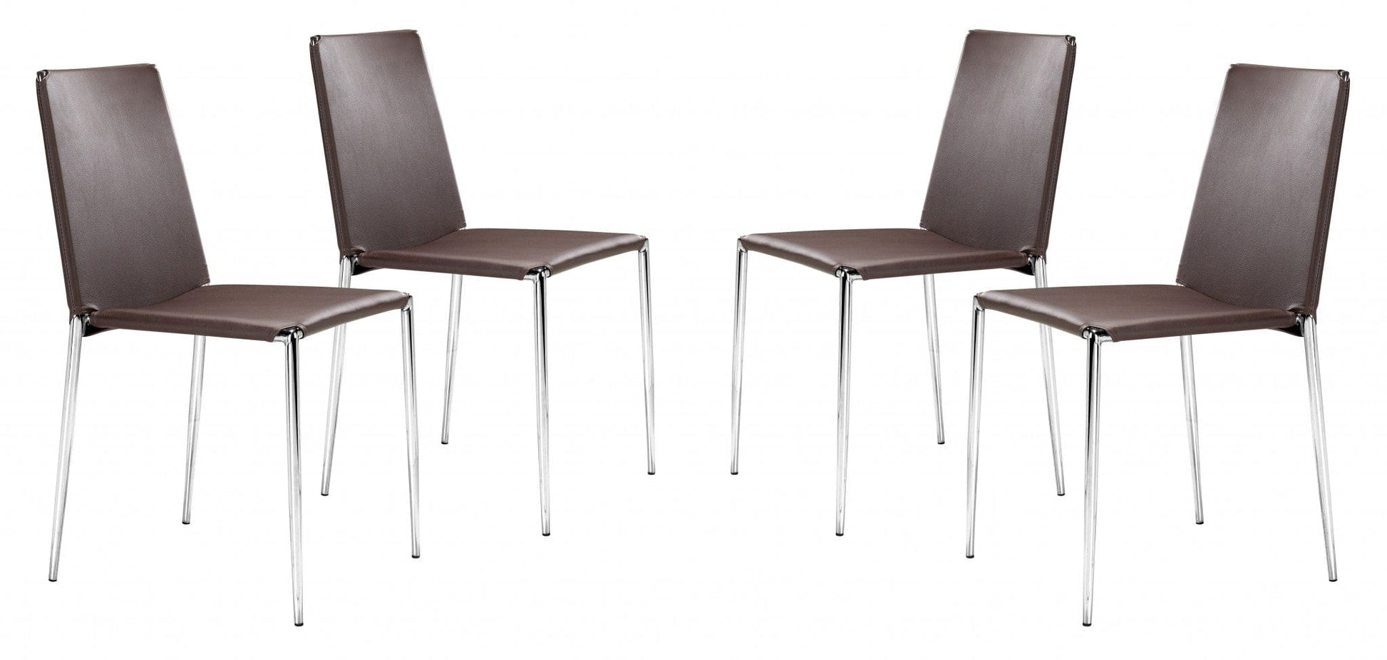 Set of Four Brown Faux Leather and Steel Standard Stackable Dining or Accent Chairs