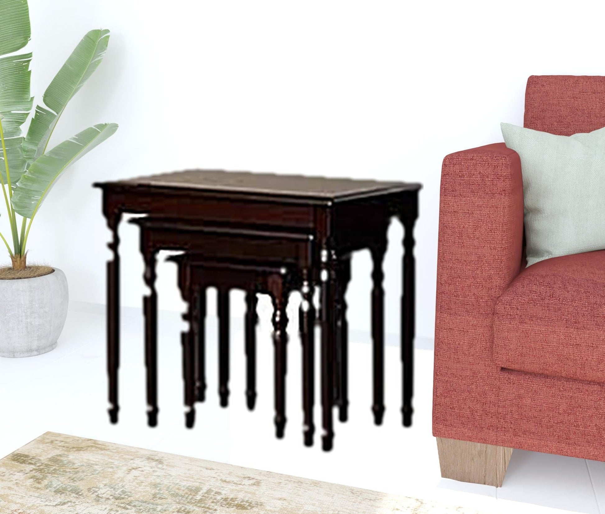 Set Of Three 19" Dark Brown Wood Rectangular Nested Tables