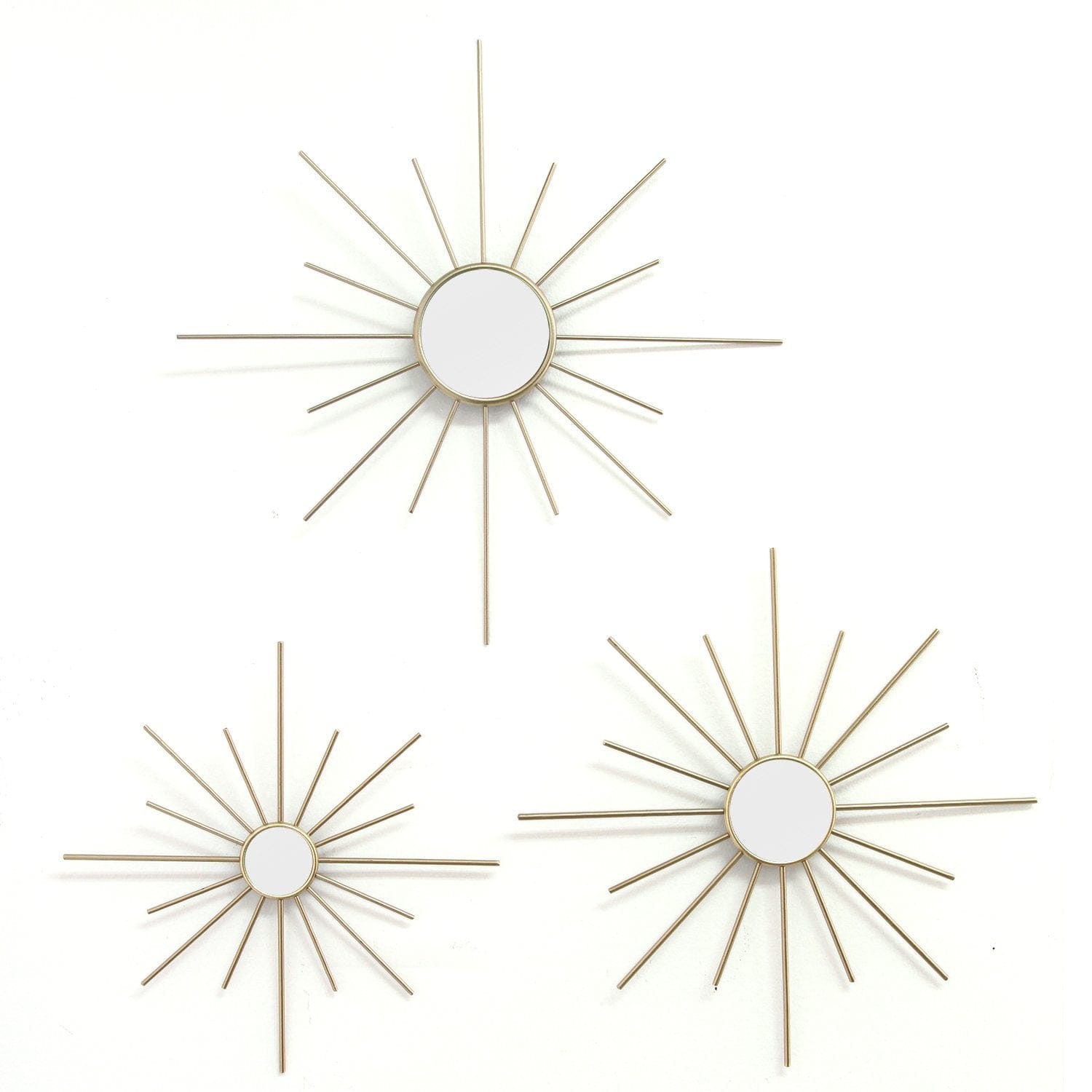 Set Of Three Gold Mirror Burst Metal Wall Decor