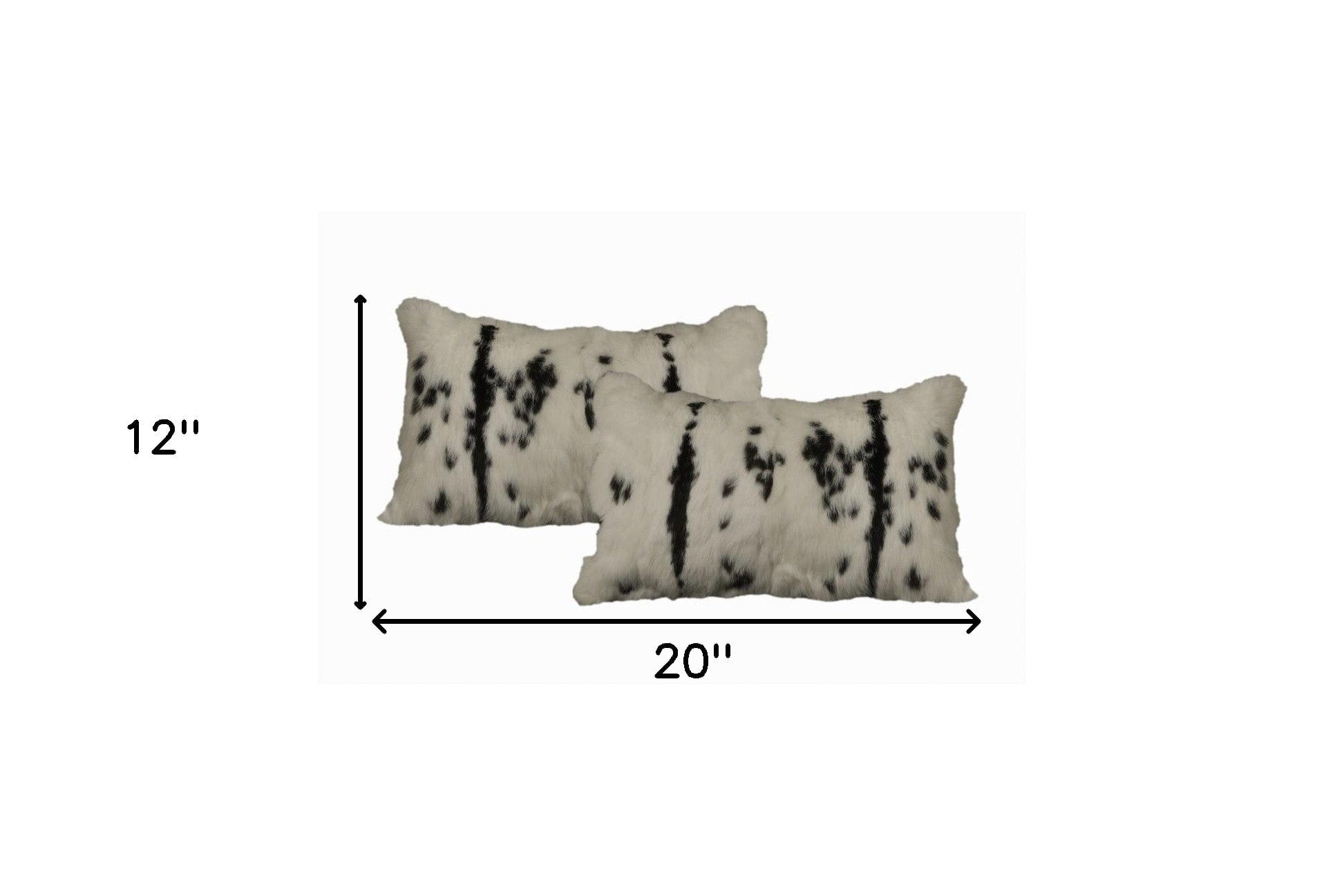 Set Of Two 12" X 20" Black And White Rabbit Zippered Natural Fur Animal Print Throw Pillows