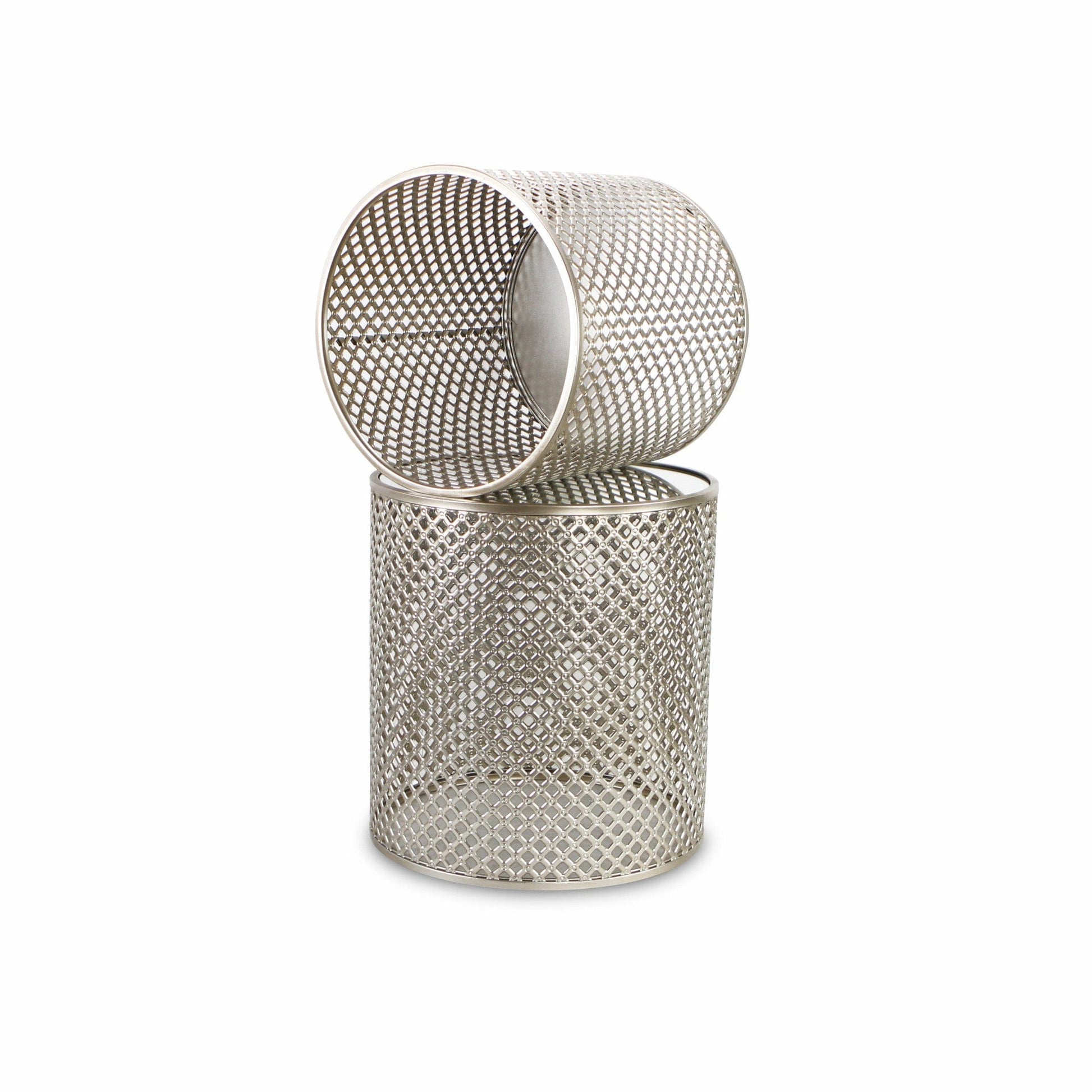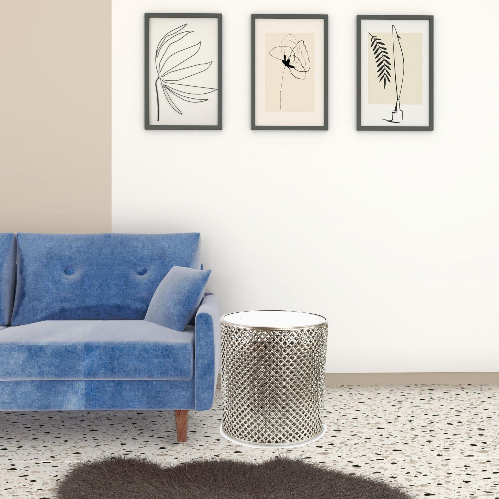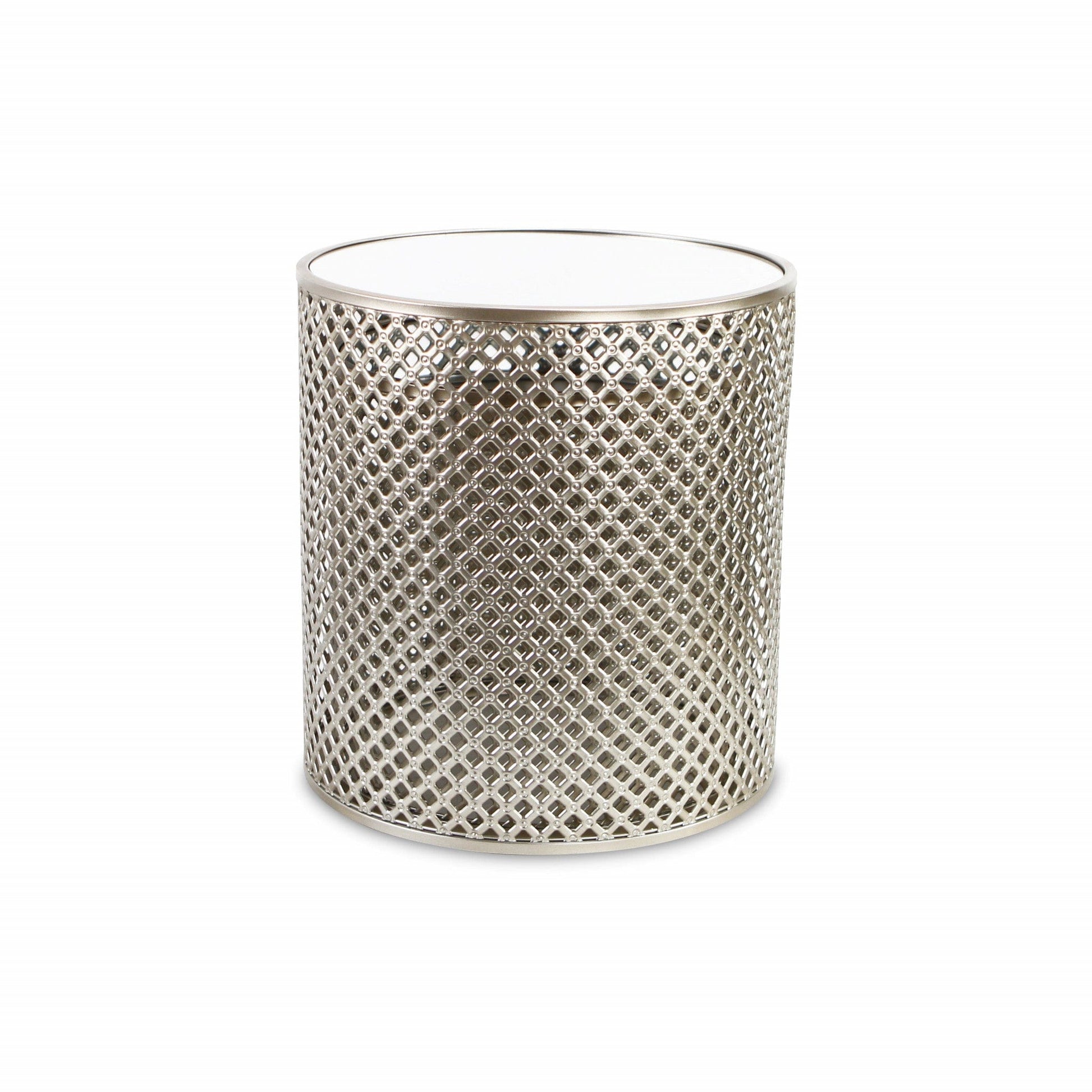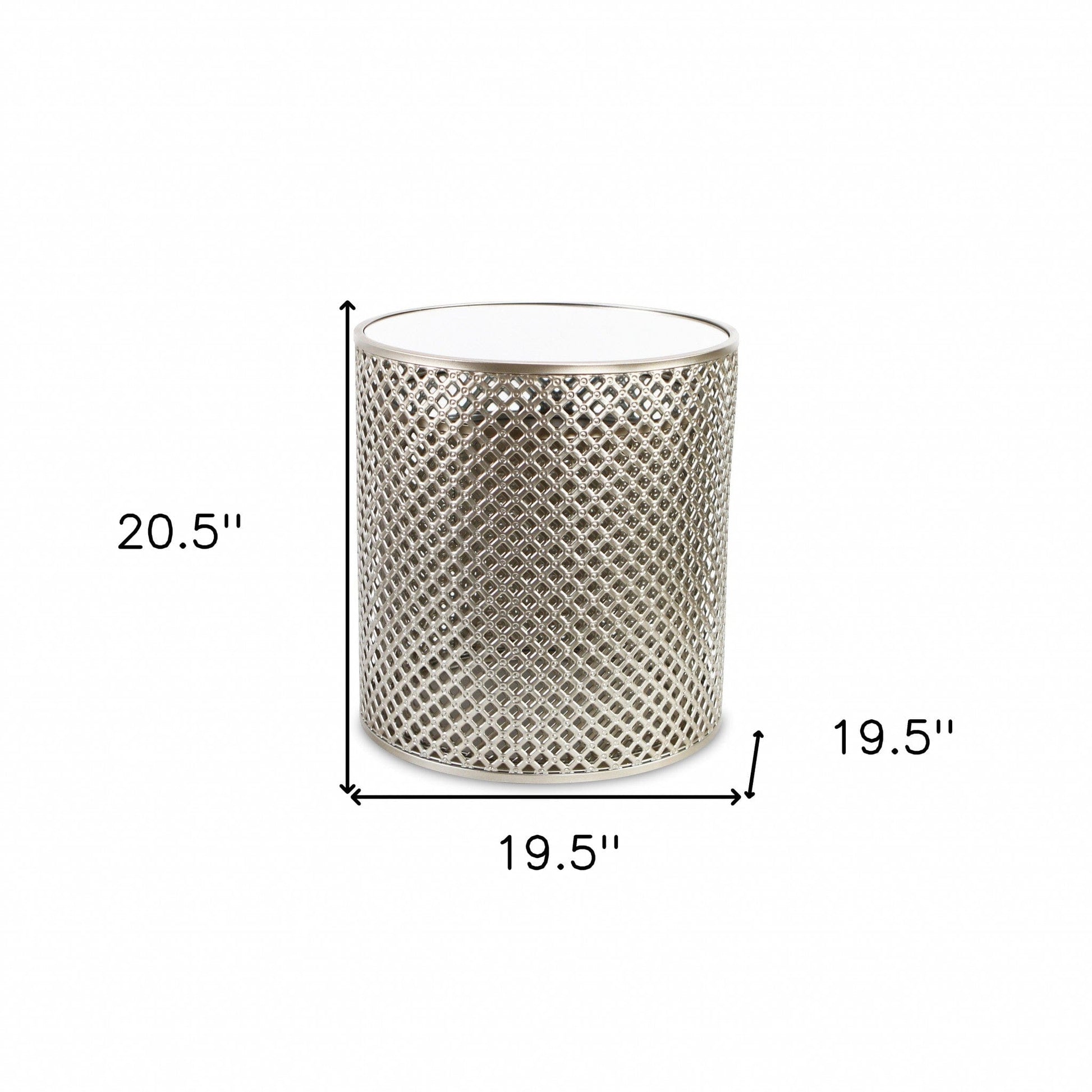 Optimize your space with the set of two 21" silver and white mirrored and steel round nested tables that nest into each other easily and fashionably when not in use. Quality construction from the silver steel base combines with white mirrored of the top to give this table a fresh and updated look. A great accent on either side of the sofa or bed, this adorable end or side table is just what you need. You can also use it as an entryway table to hold your keys. 20.5" H x 19.5" W x 19.5" D