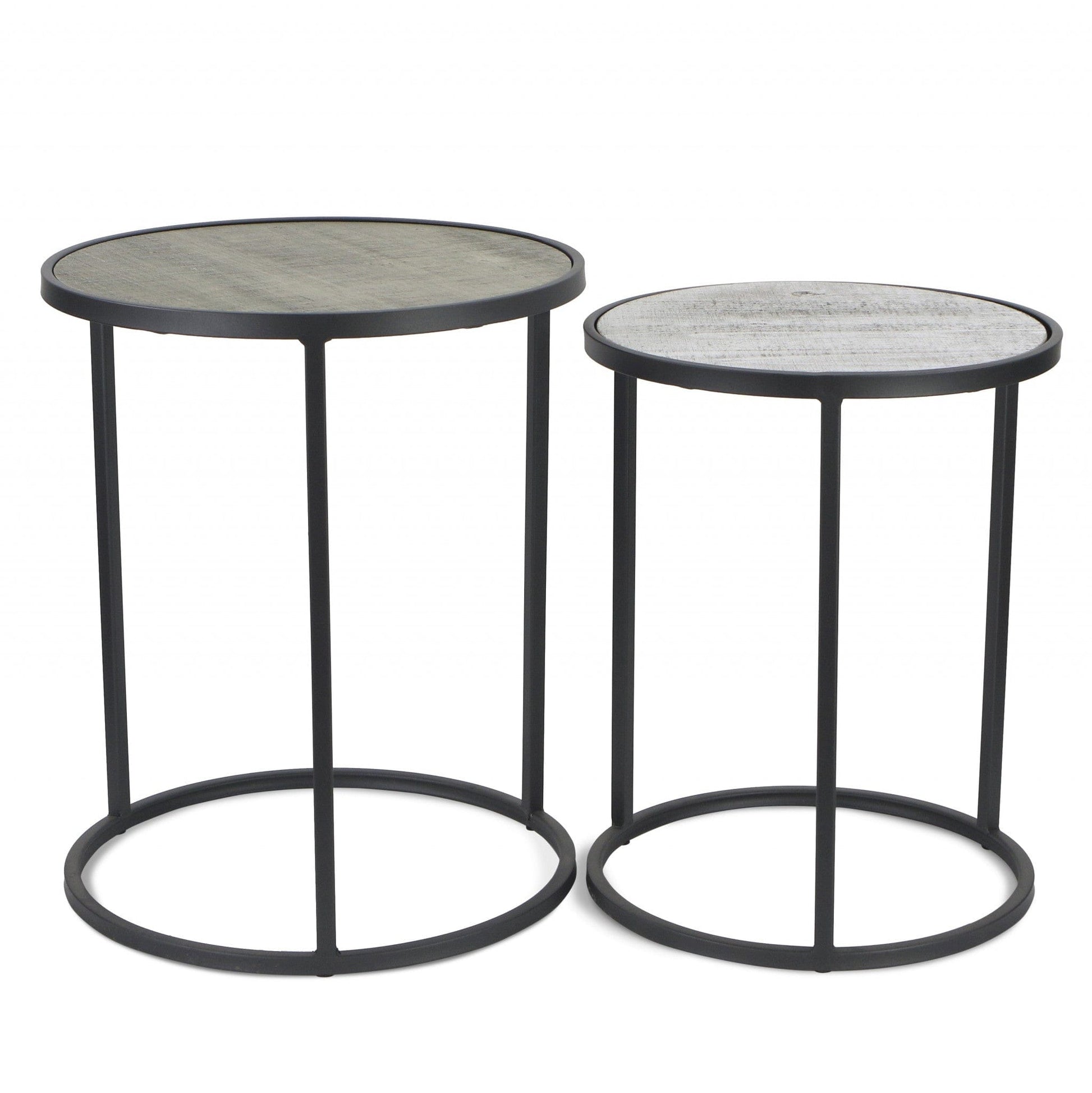 Optimize your space with the set of two 22" dark gray and light gray solid wood round nested tables that nest into each other easily and fashionably when not in use. The base of this table is made from steel in a dark gray color that is a nice contrast to the gray solid wood tabletop. A great accent on either side of the sofa or bed, this adorable end or side table is just what you need. You can also use it as an entryway table to hold your keys. 22" H x 18" W x 18" D