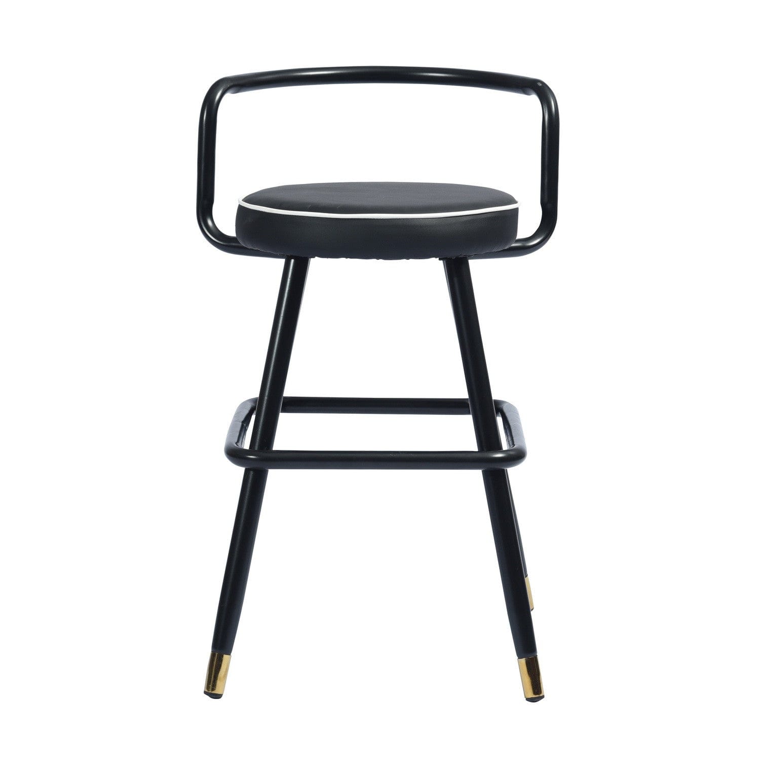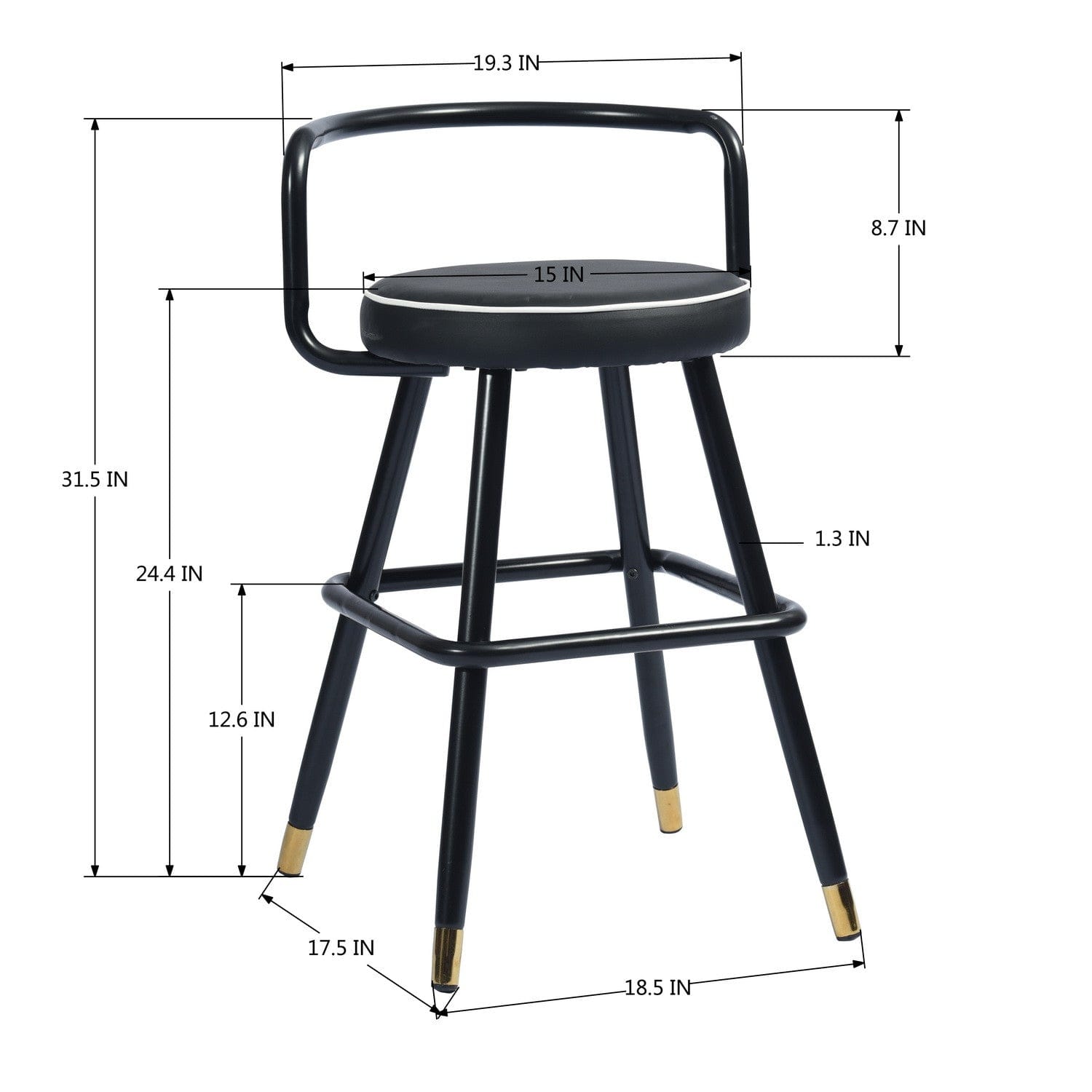 Comfortable enough to sit in for awhile, this set of two 32" black backless counter height bar chairs will transcend the look of your room. A solid black steel frame is finished off with a matching black upholstered seat, giving this chair a chic monotone look. Designed to be good looking and practical, this backless bar chair features a round shaped seat. This stool will look great in your dining room, kitchen, bar, or recreation room. 31.5" H x 18.5" W x 17.5" D